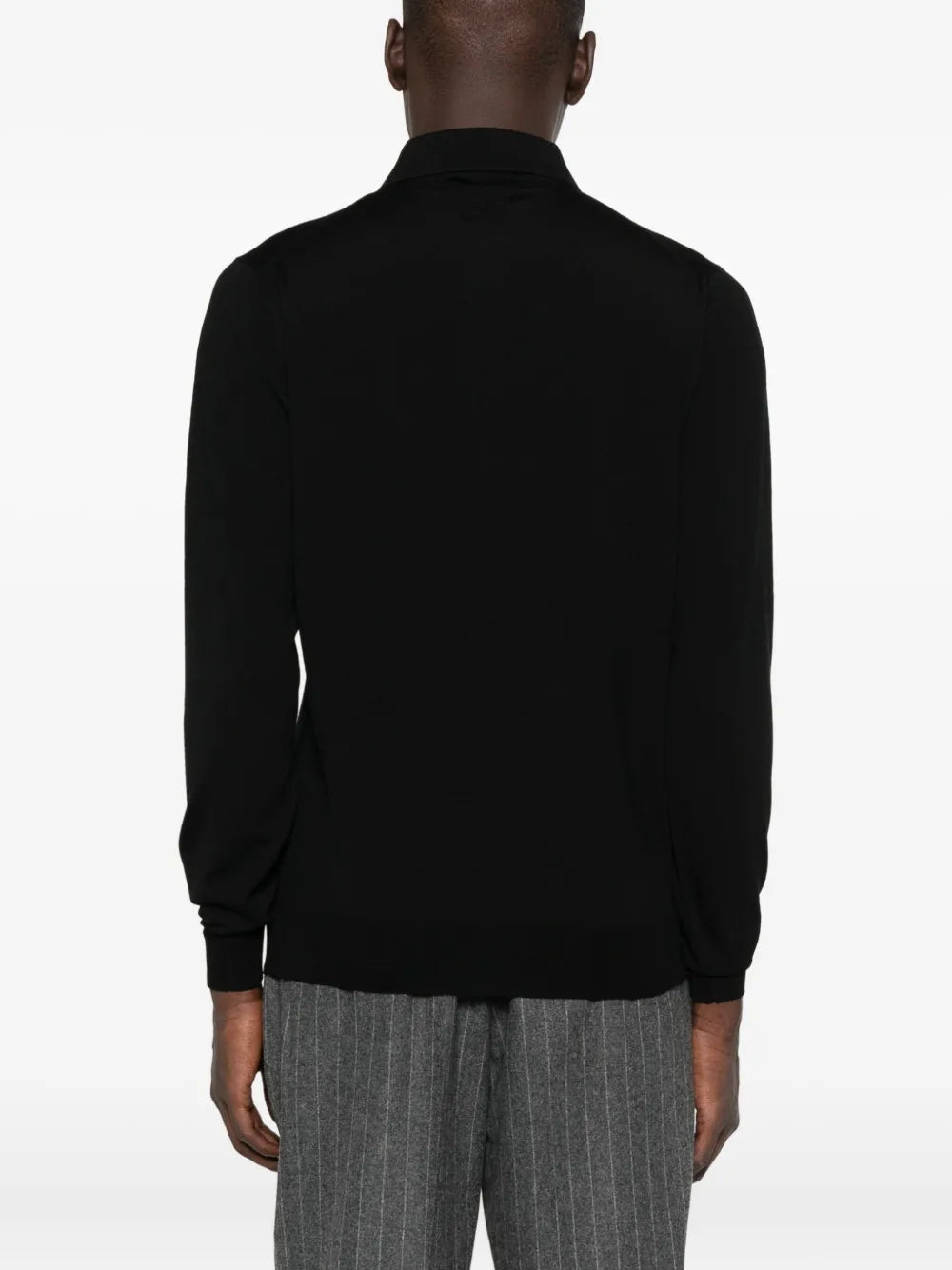 Long-sleeved wool polo Origin: Italy Features Black Wool Long sleeves Polo collar Button closure Contrasting stitching Composition 100% virgin wool Care Instructions Dry clean only ID CNLPML62CN64021
