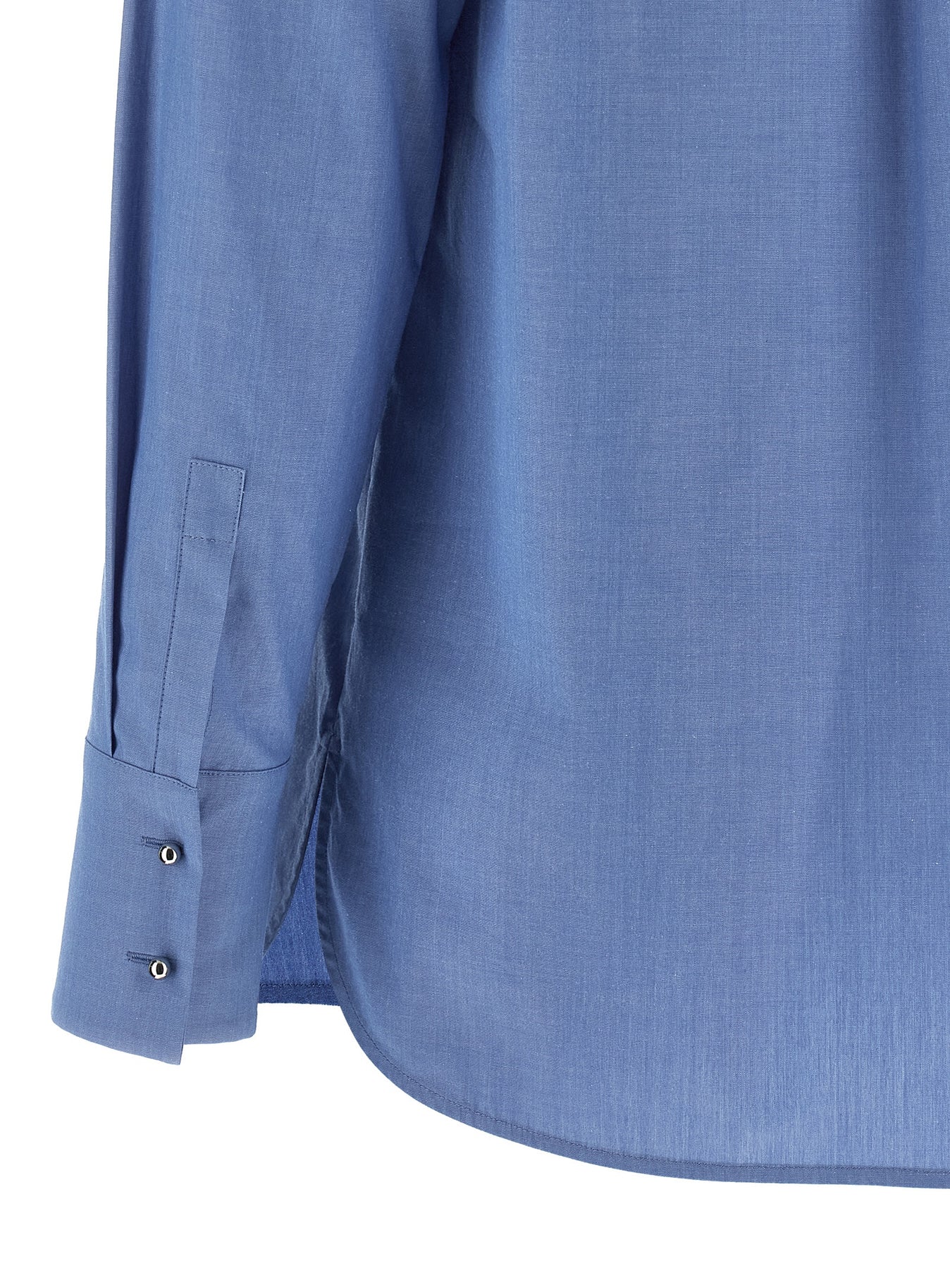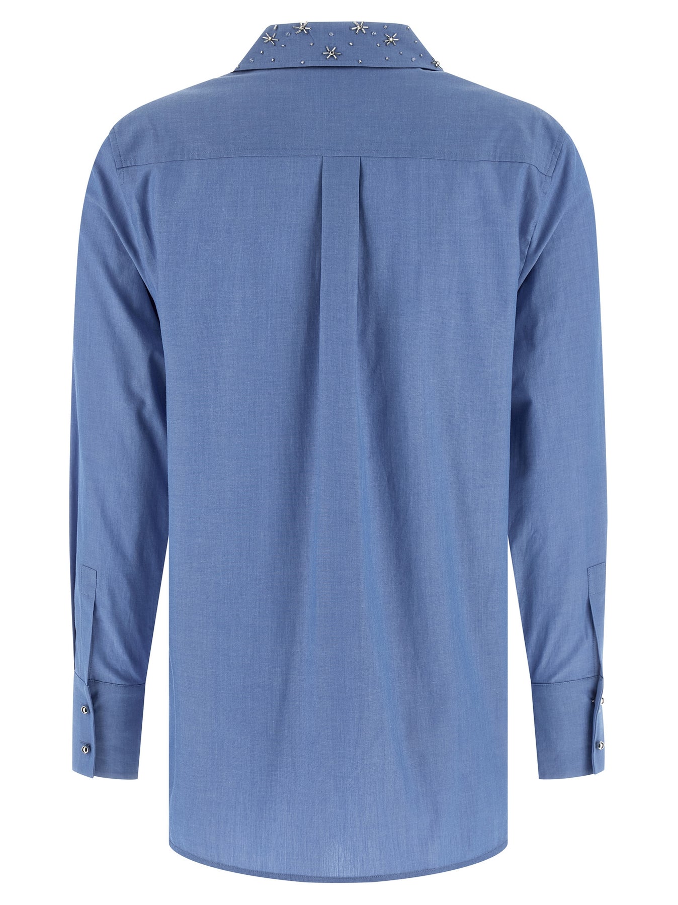'Staffa' pure cotton poplin shirt, pointed collar with faceted crystal appliqué, tone-on-tone logo embroidery and concealed front button closure, long cuffed sleeves.