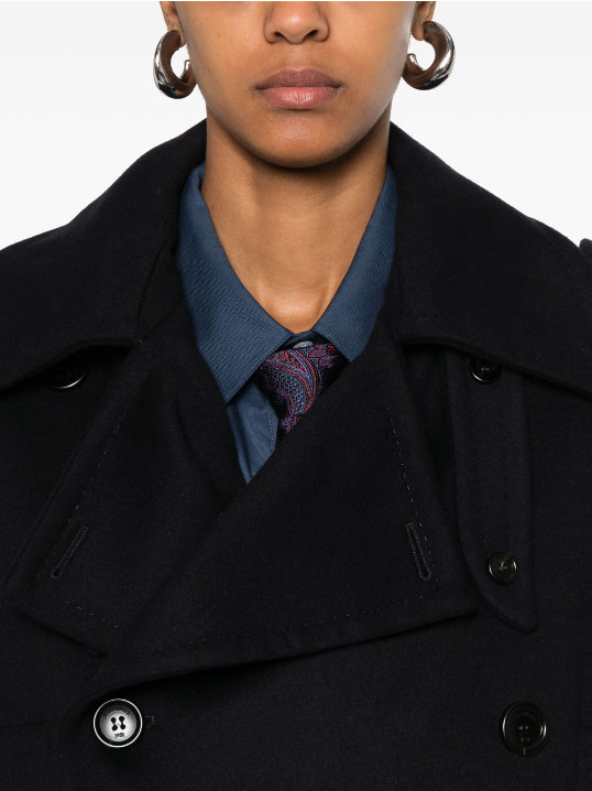 blue front double-breasted fastening side welt pockets padded shoulders epaulettes