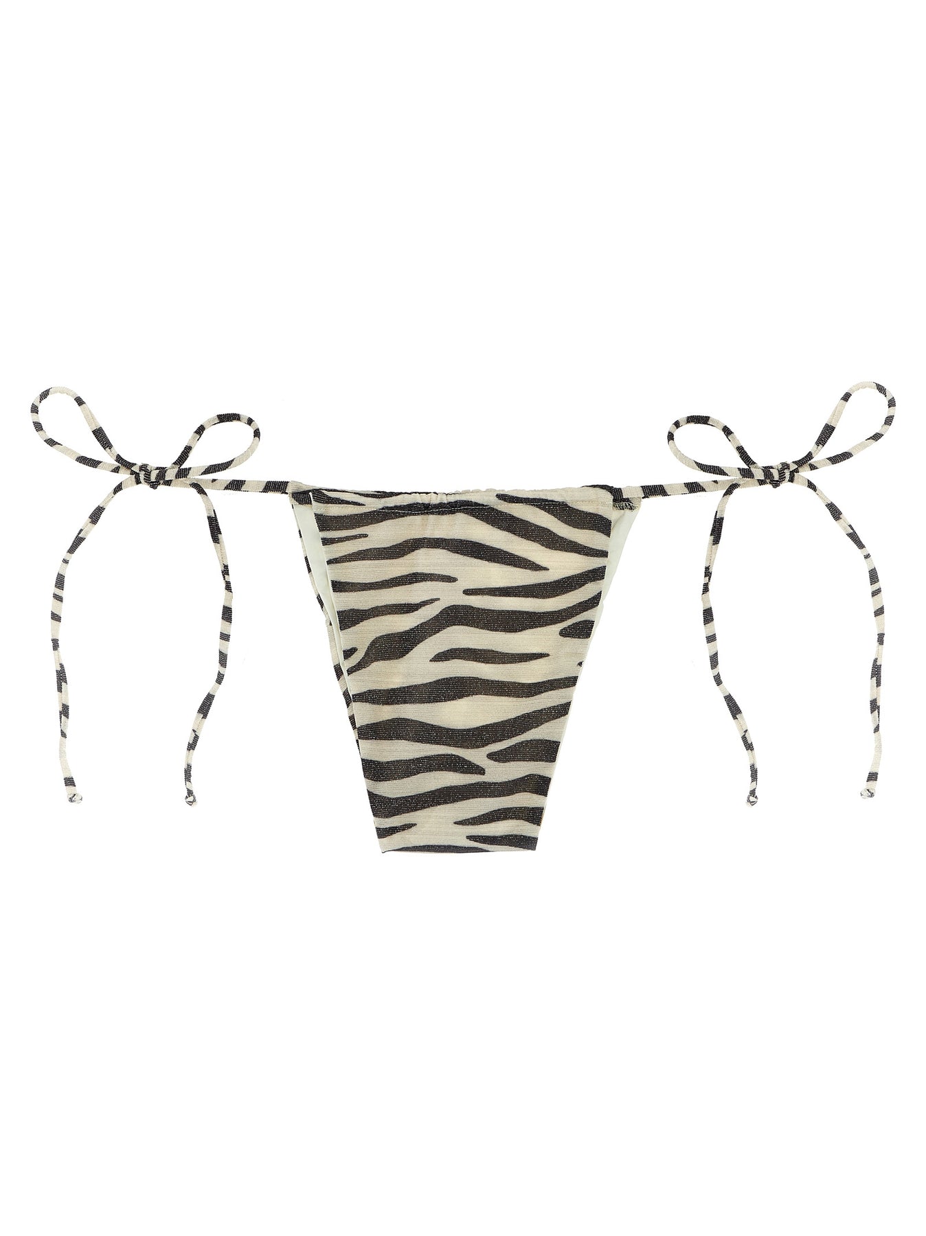 'Colin' bikini bottoms in all-over animal print stretch lurex fabric, lacing on the sides, medium cover, back logo patch.
