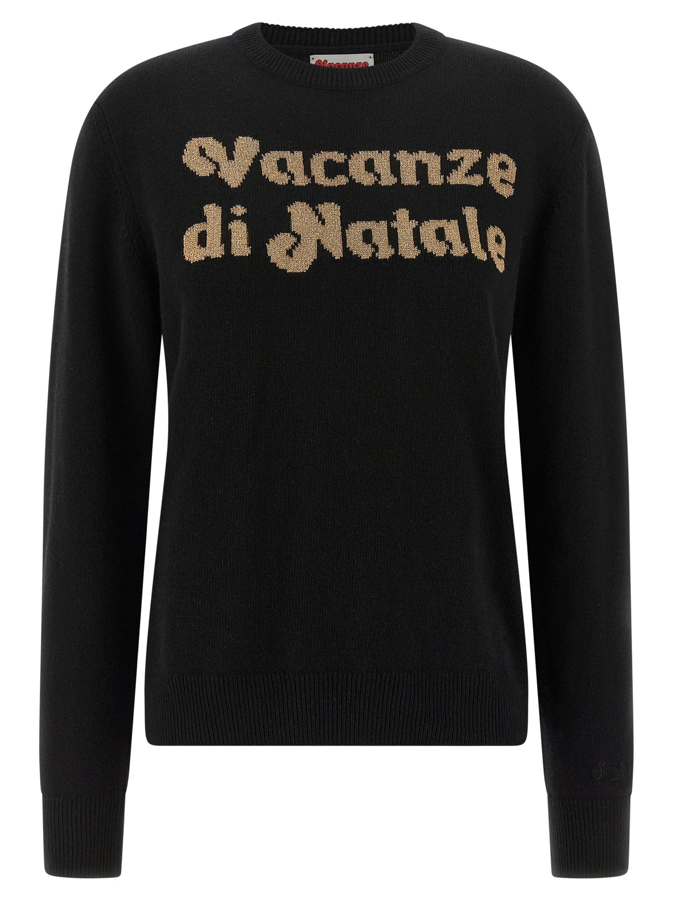 Limited Edition 'New Queen - Vacanze di Natale' wool, viscose and cashmere sweater with front jacqaurd writing with lamé thread, crew neck, long cuffed sleeves and logo embroidery.