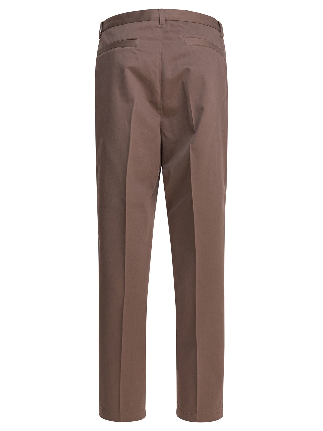 Brunello Cucinelli tapered pants made of cotton with soft structure and tapered silhouette. The style features classic construction with a regular waist and front zip-and-button closure. The line follows the leg without excess, while the two side pockets and two welt pockets on the back finish the design with functional and essential details. Seams are linear and defined for a clean construction. || - Solid color - Mid-rise waist - Zipper and button closure - Two side pockets - Two welt pockets on the back - 100% cotton - Regular fit
