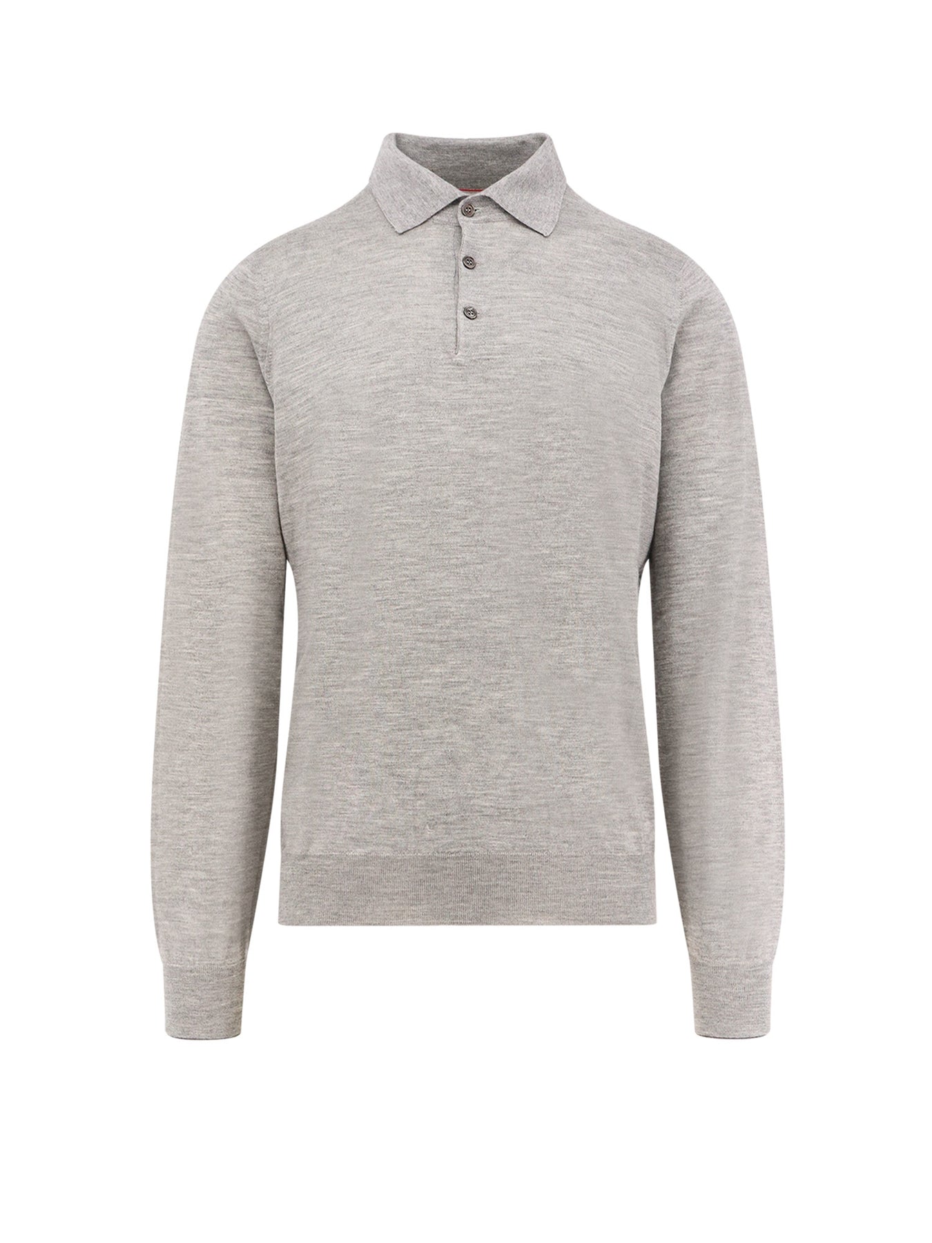 Closure with three buttons Long sleeve with cuff Classic ribbed collar Made in Italy 70% cashmere 30% silk SKU: M2300295C073D