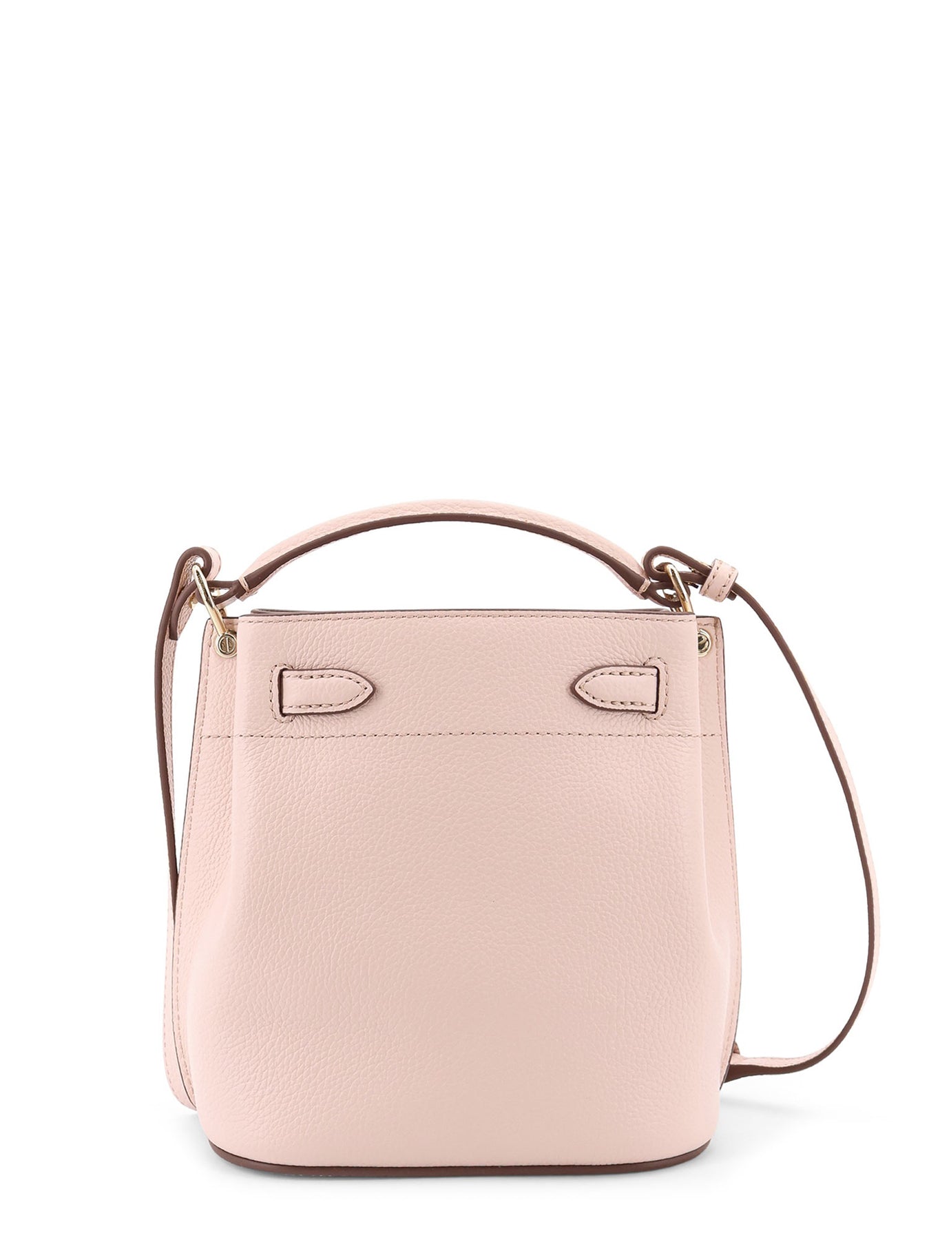 Closure with twist lock and metal plaque with logo Leather handle Removable and adjustable leather shoulder strap Single compartment Lining: suede W: 18 cm x H: 17 cm x D: 7 cm SKU: RL8803205J002