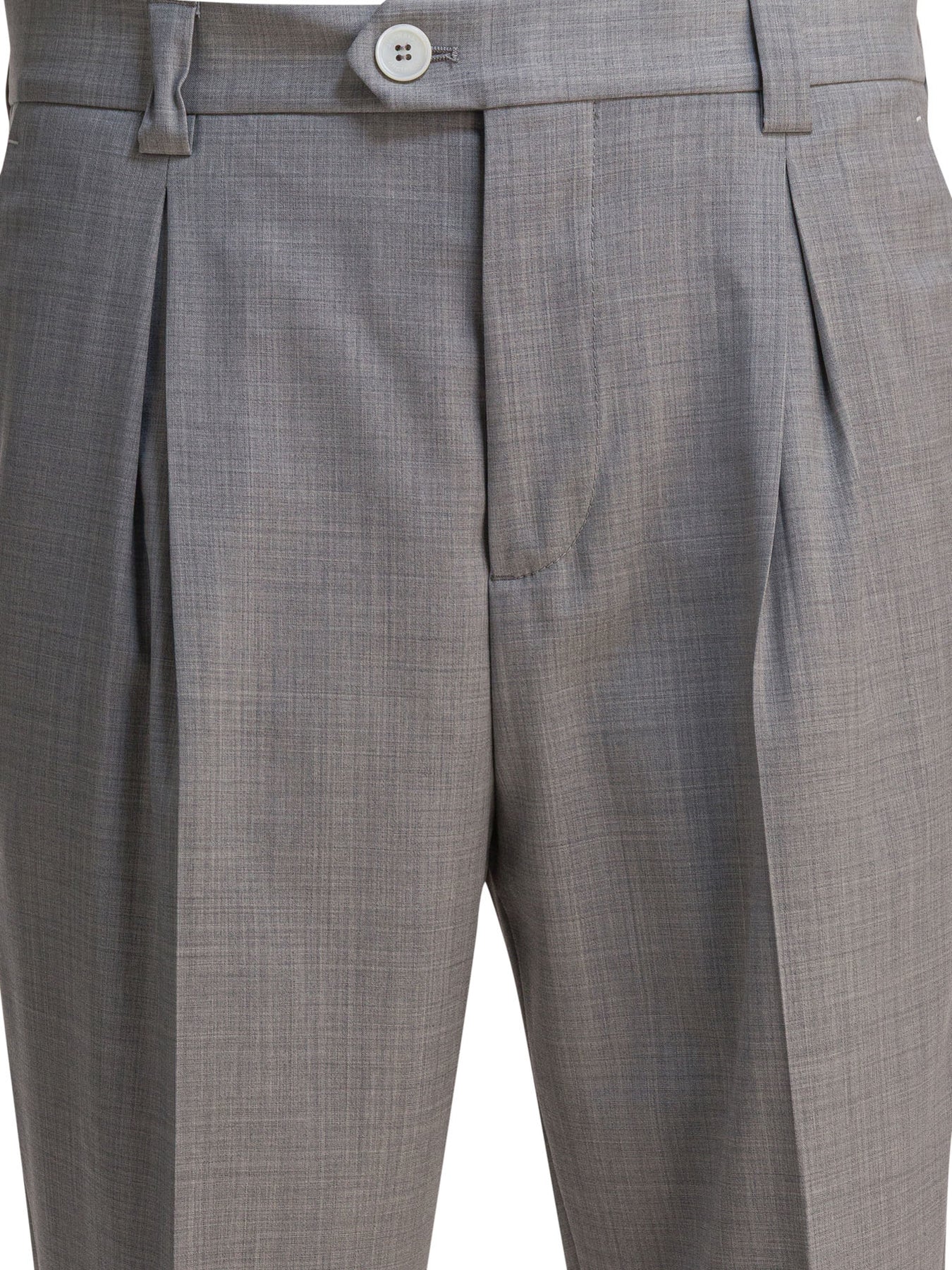 Brunello Cucinelli "Dynamic" pants, made of canvas composed exclusively of virgin wool fibers. The structure features a regular-fit silhouette, free of superfluous decorative elements. The fabric is distinguished by lightness and smooth surface, designed to ensure comfort during climatic transitions. Functional tee holder applied on the leg, characteristic of the Golf universe. Zipper closure with button, essential lines. || - Solid color - Medium waist - Smooth finish - Zipper and button front closure - Slim fit