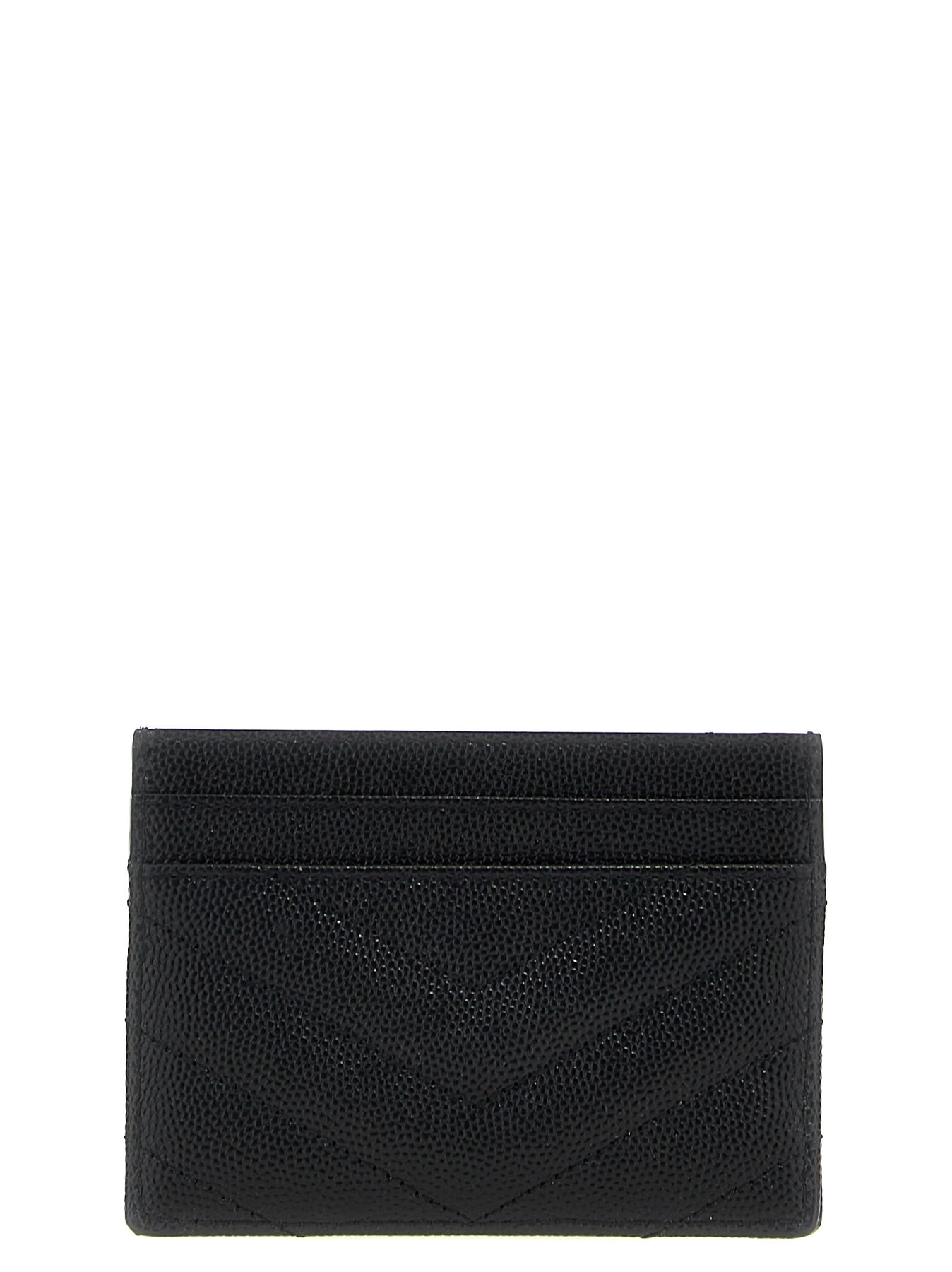 Quilted leather 'Cassandre' wallet, front metal logo applique.