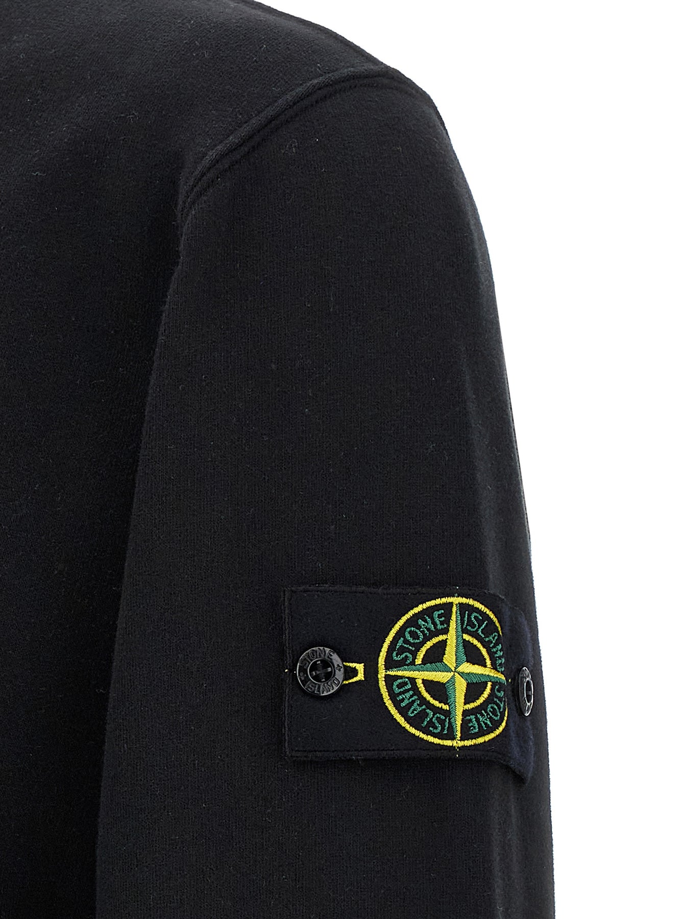 Fleece cotton sweatshirt with ribbed cotton side insert, crew neck, long cuffed sleeves and a logo badge.
