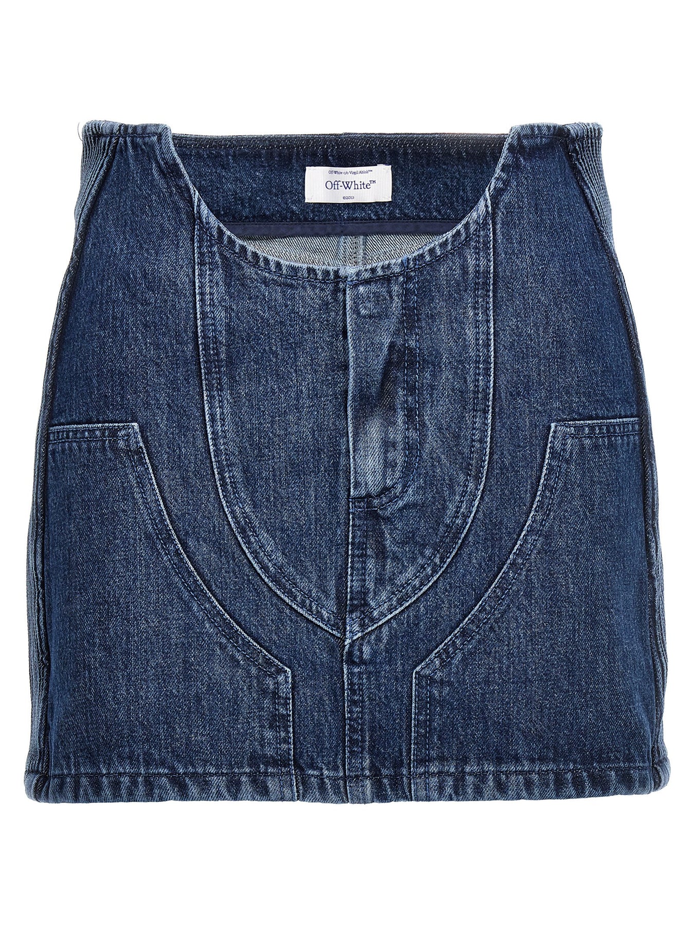 Motorcycle' denim miniskirt featuring 3D details, low and asymmetric waist, a zip fastening.