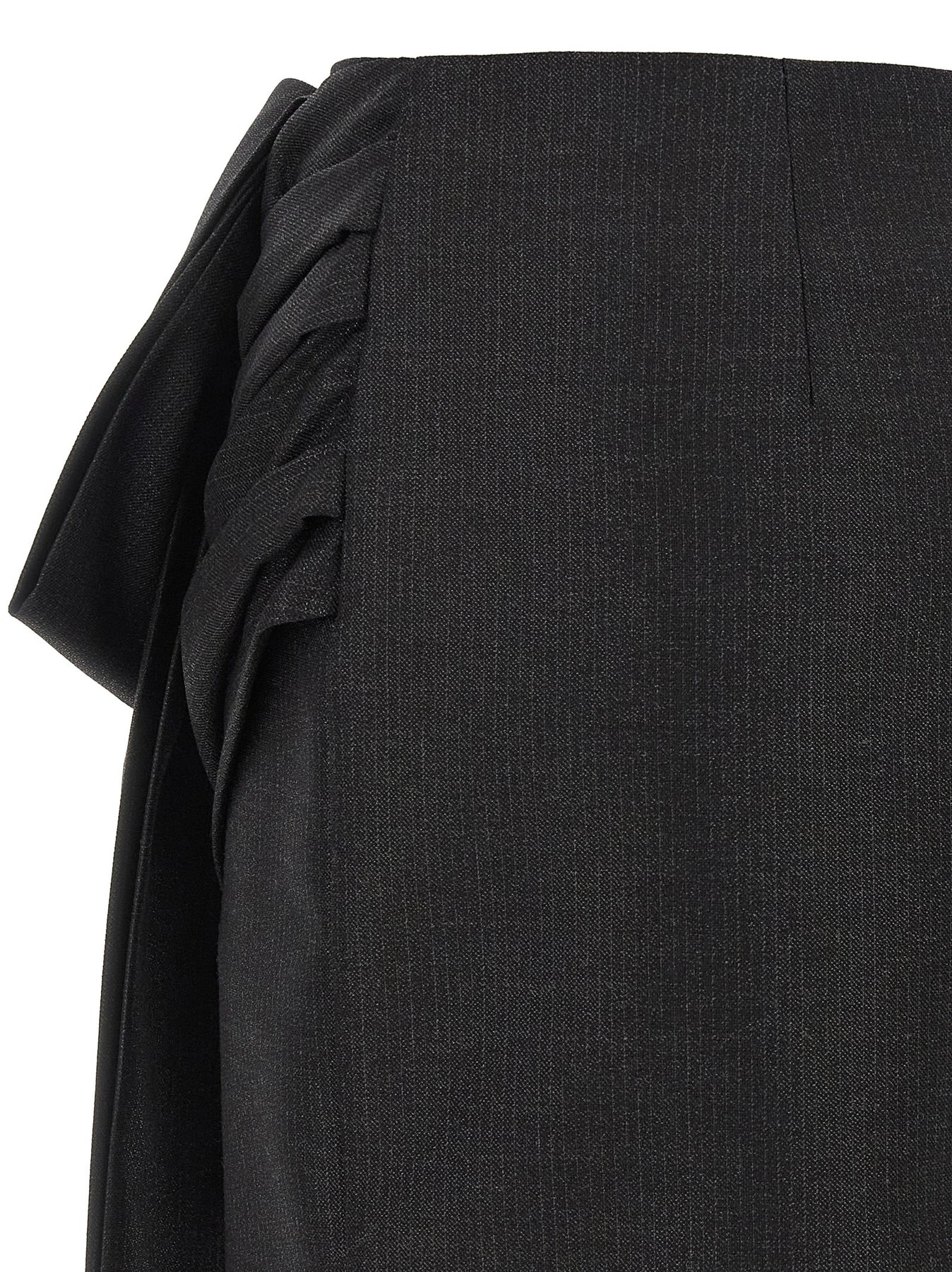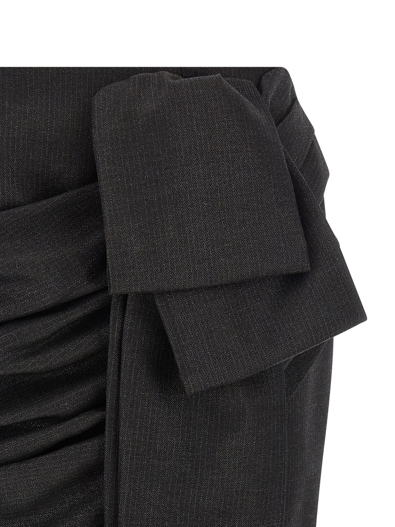 Mini 'Alejandrina' skirt in wool blend canvas worked with thin pinstriped metallic thread, draping and decorative band with front bow, back zip closure, lining.