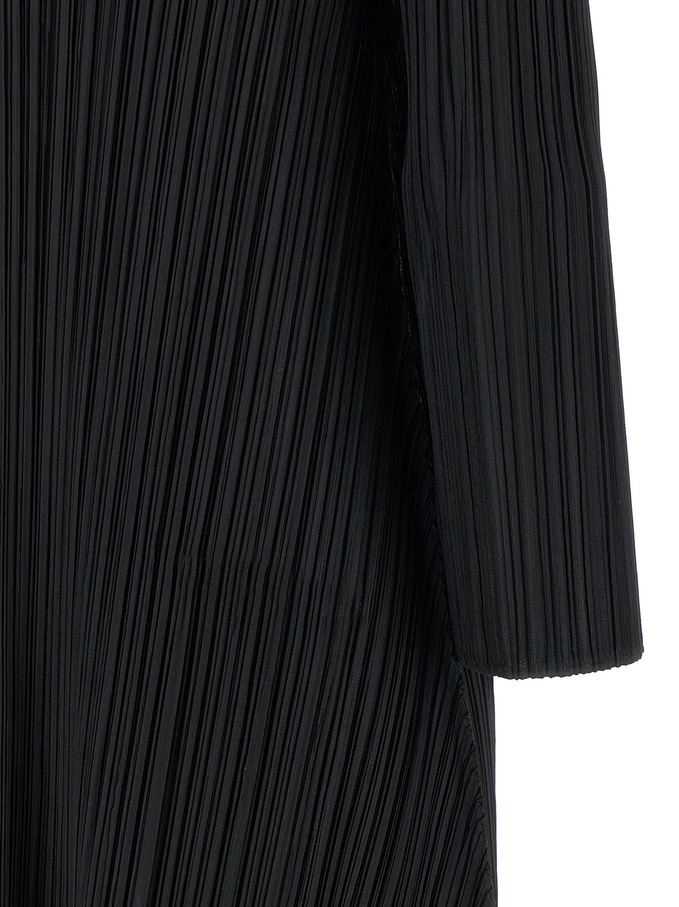 'Monthly Colors October' pleated midi dress with crew neck, long sleeves.