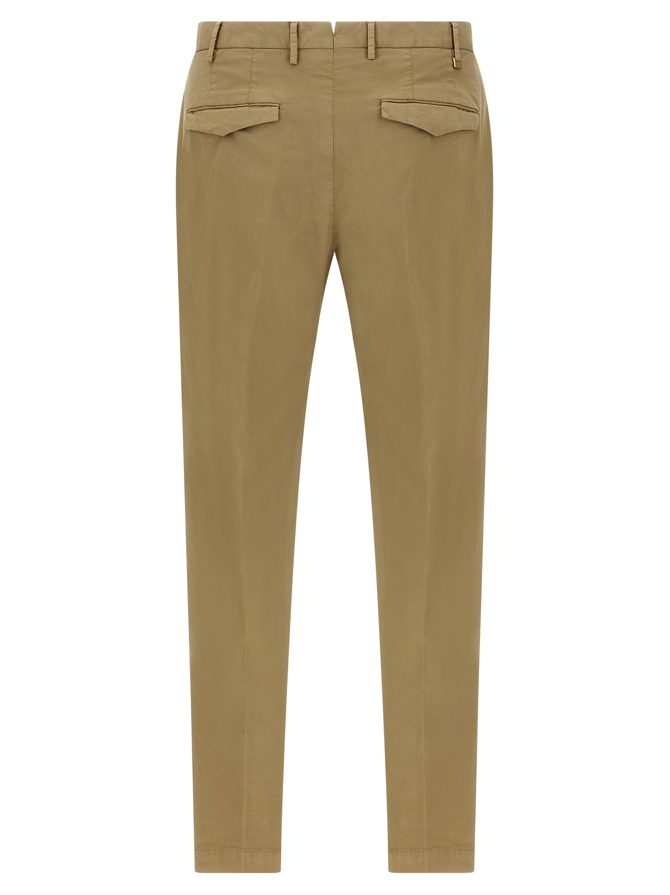 'Master' stretch cotton pants, hook and button zip closure, straight leg, stretched crease, pockets.