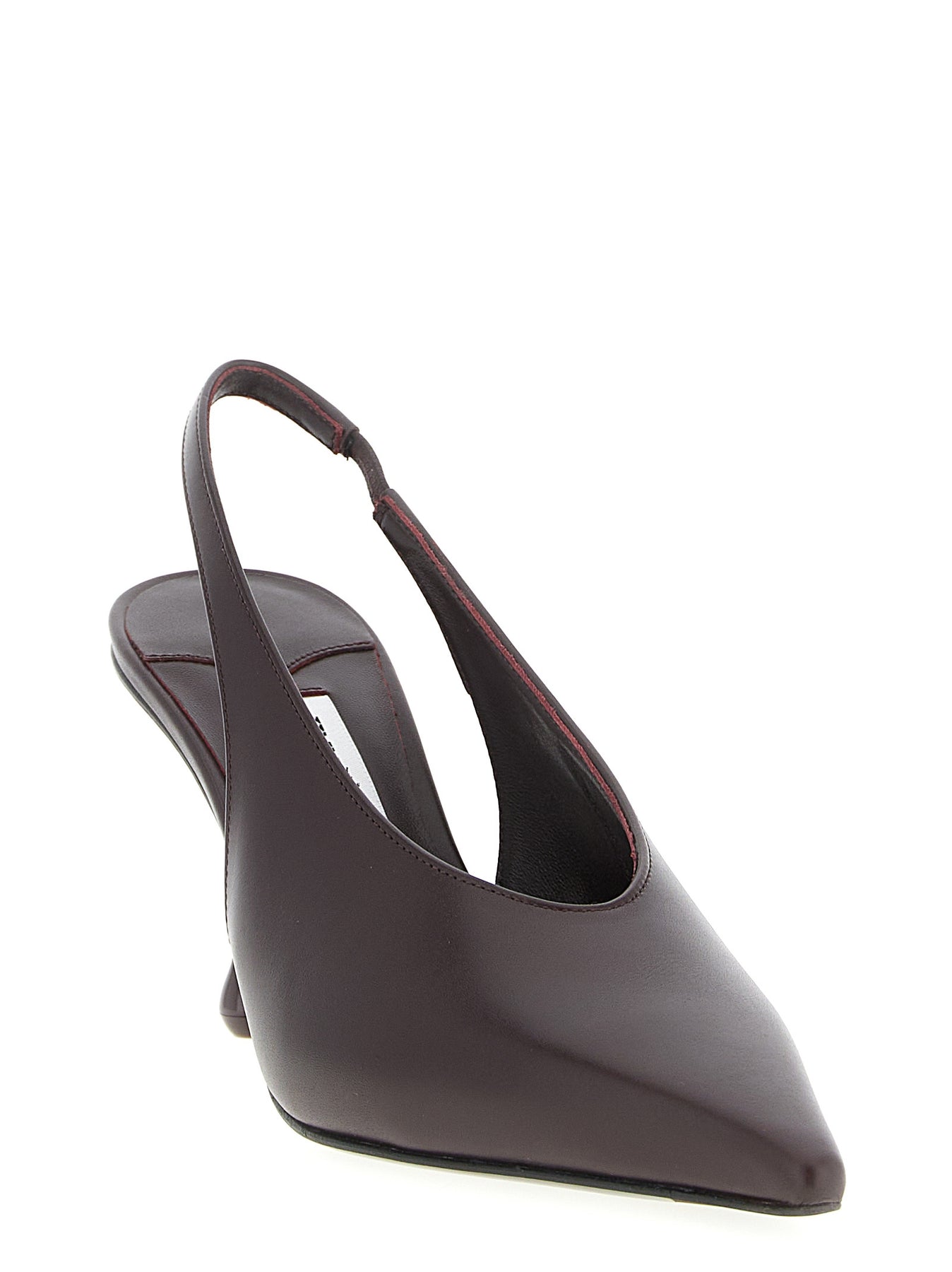 'Isa' calf leather slingbacks, pointed toe, padded footbed, elastic strap, teardrop heel, leather and rubber sole.