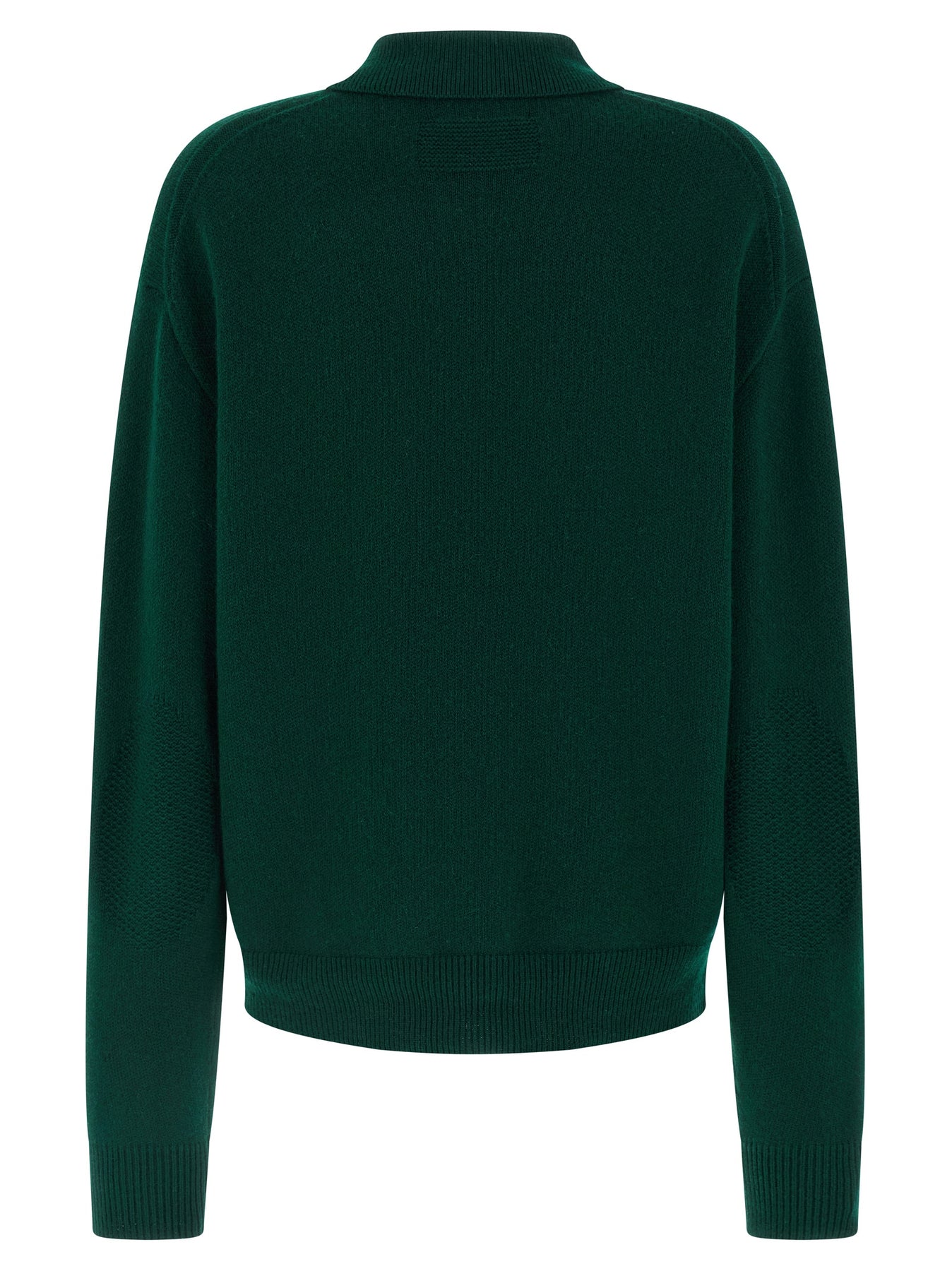 'Allday' medium-weight cashmere polo shirt with collar and buttons, long cuffed sleeves, dropped shoulder and different weave on the elbow.