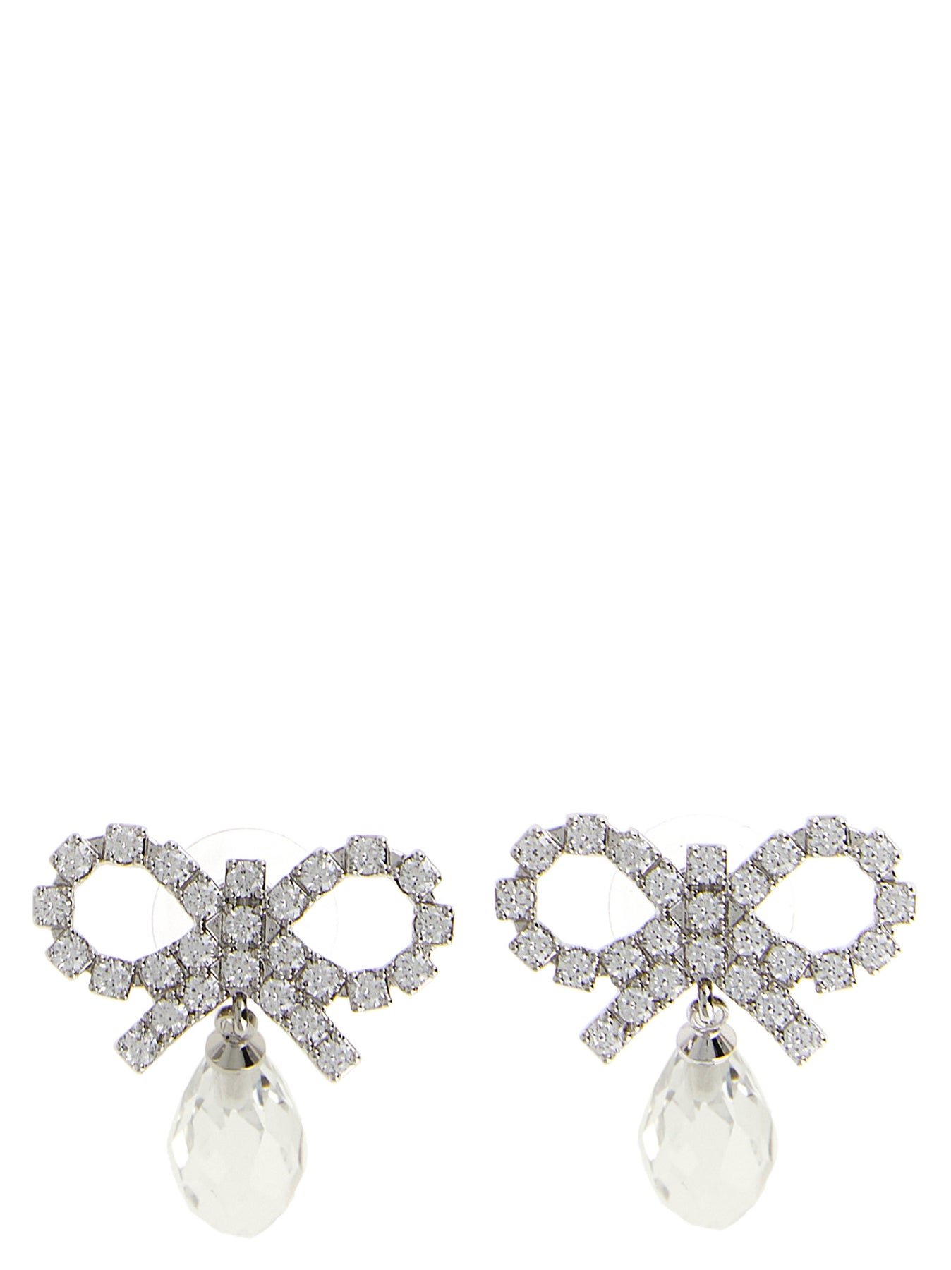 'Bow Crystal Droplet' earrings in metal and crystals, model with teardrop pendant and pivot closure. ITEM CANNOT BE RETURNED