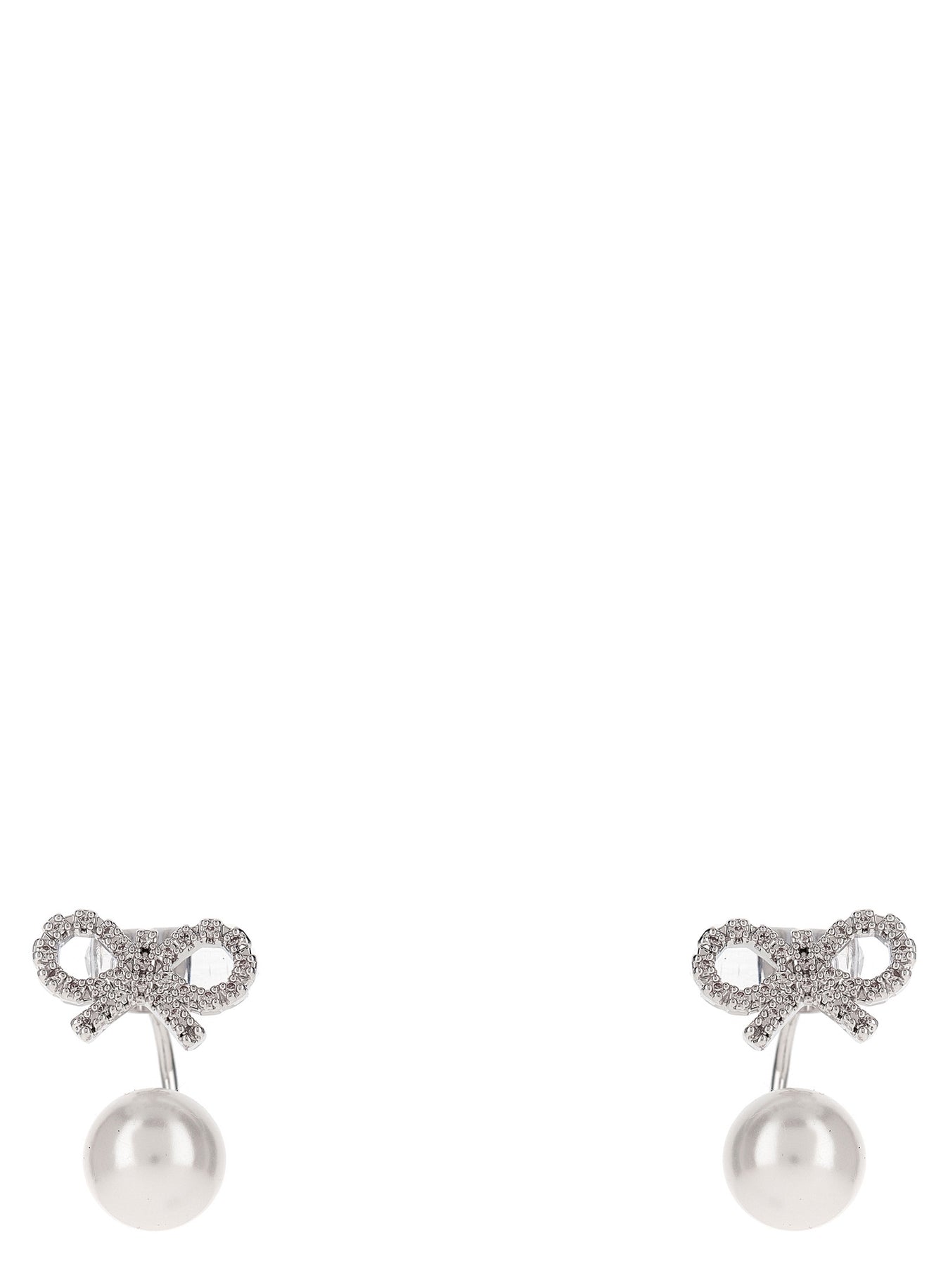 Crystal Bow Pearl Jacket' earrings in silver-plated brass with micro crystals, butterfly closure and pendant fake pearl. ITEM CANNOT BE RETURNED
