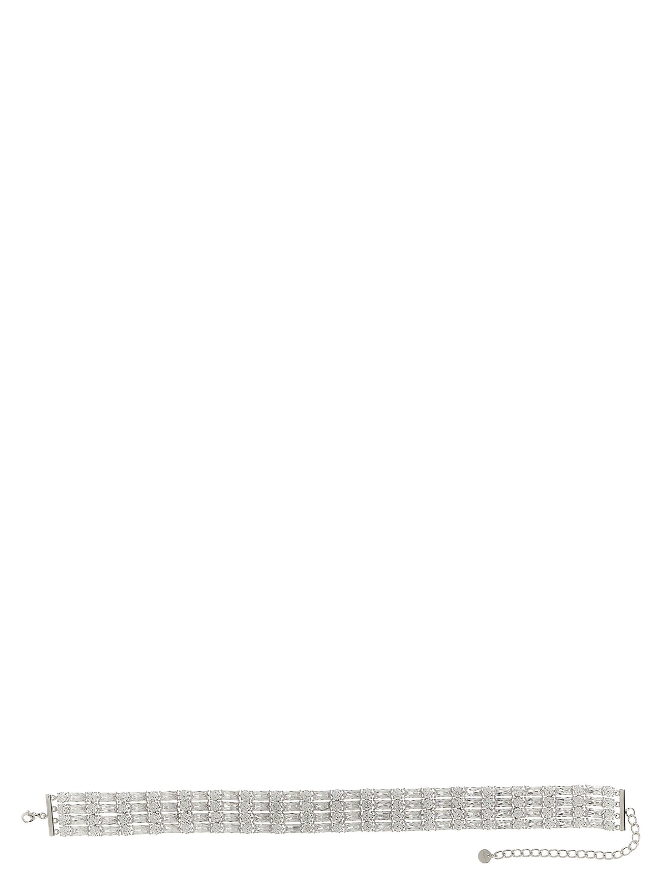 'Silver Crystal' necklace in metal and crystal threads, Choker model, snap hook closure.