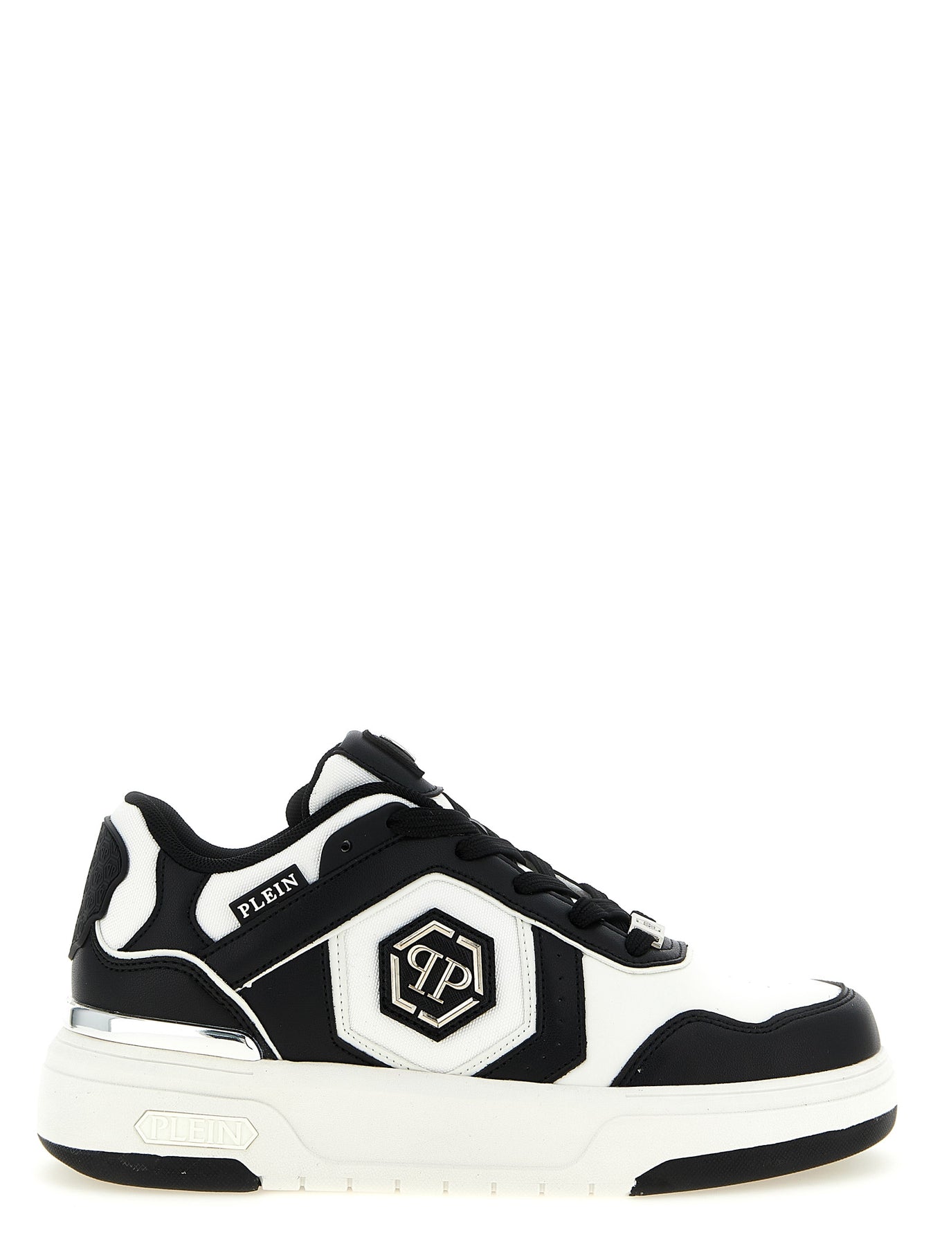 'SK8R' sneakers in leather-effect fabric and canvas with contrasting details, lace-up closure, padded tongue and instep, side nickel-plated logo, back nickel-plated spoiler, high-tech ergonomic and ultralight rubber midsole with cushioning function, removable insole, rubber sole with shaped tread.