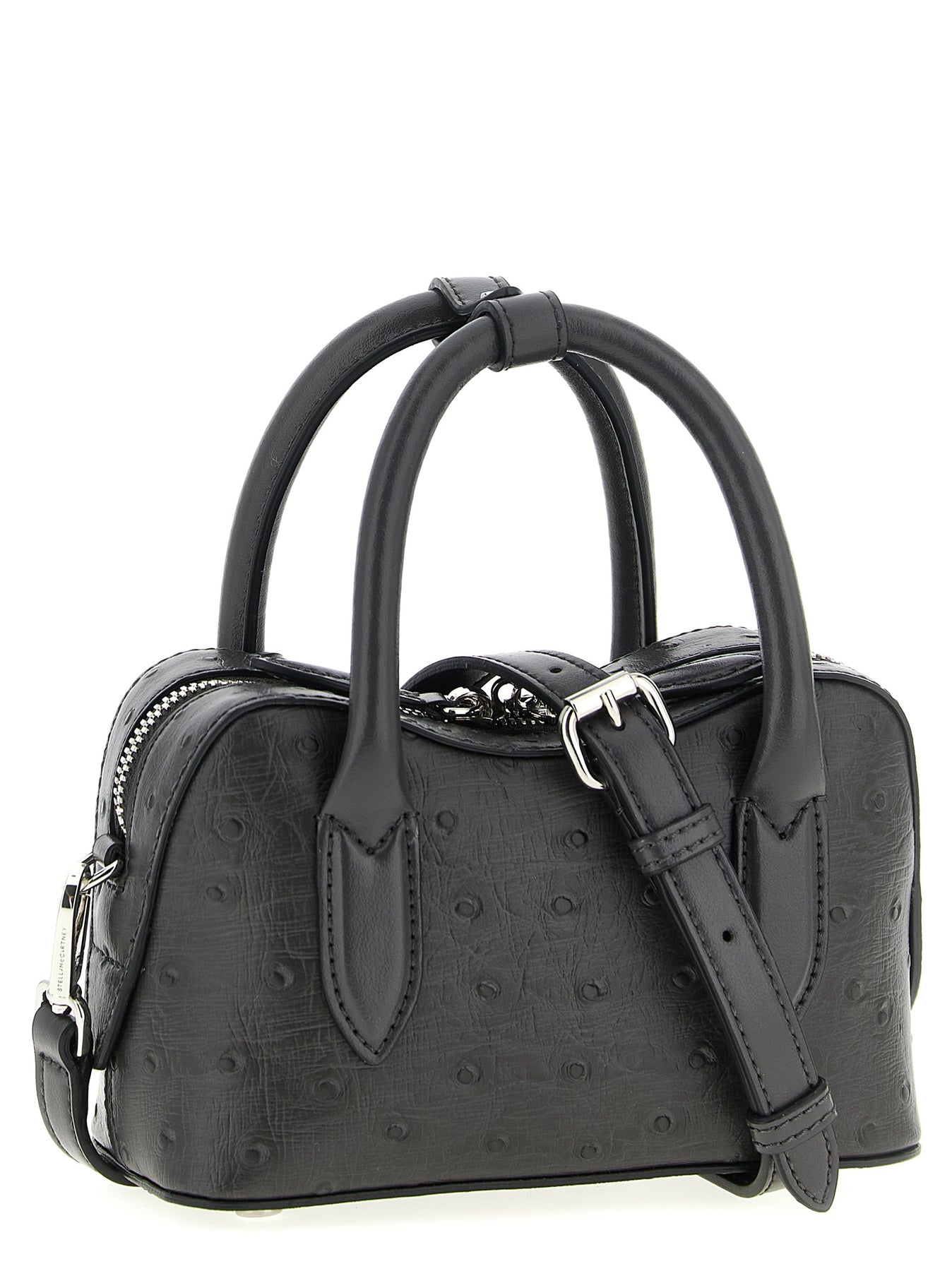'Ryder' crossbody bag in ostrich leather-effect fabric, double fixed handle, zip closure, metal padlock with engraved logo, adjustable and removable shoulder strap.