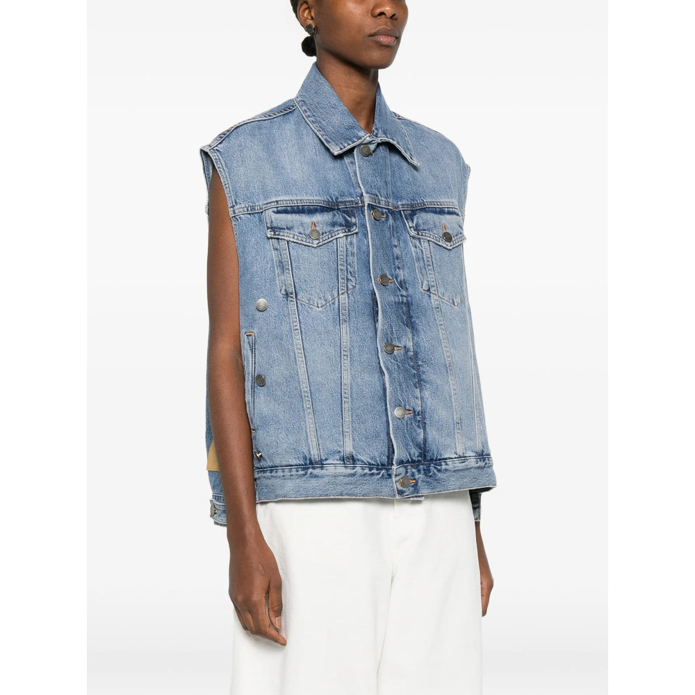 light blue flap pockets button fastening sleeveless side welt pocket silver-tone hardware