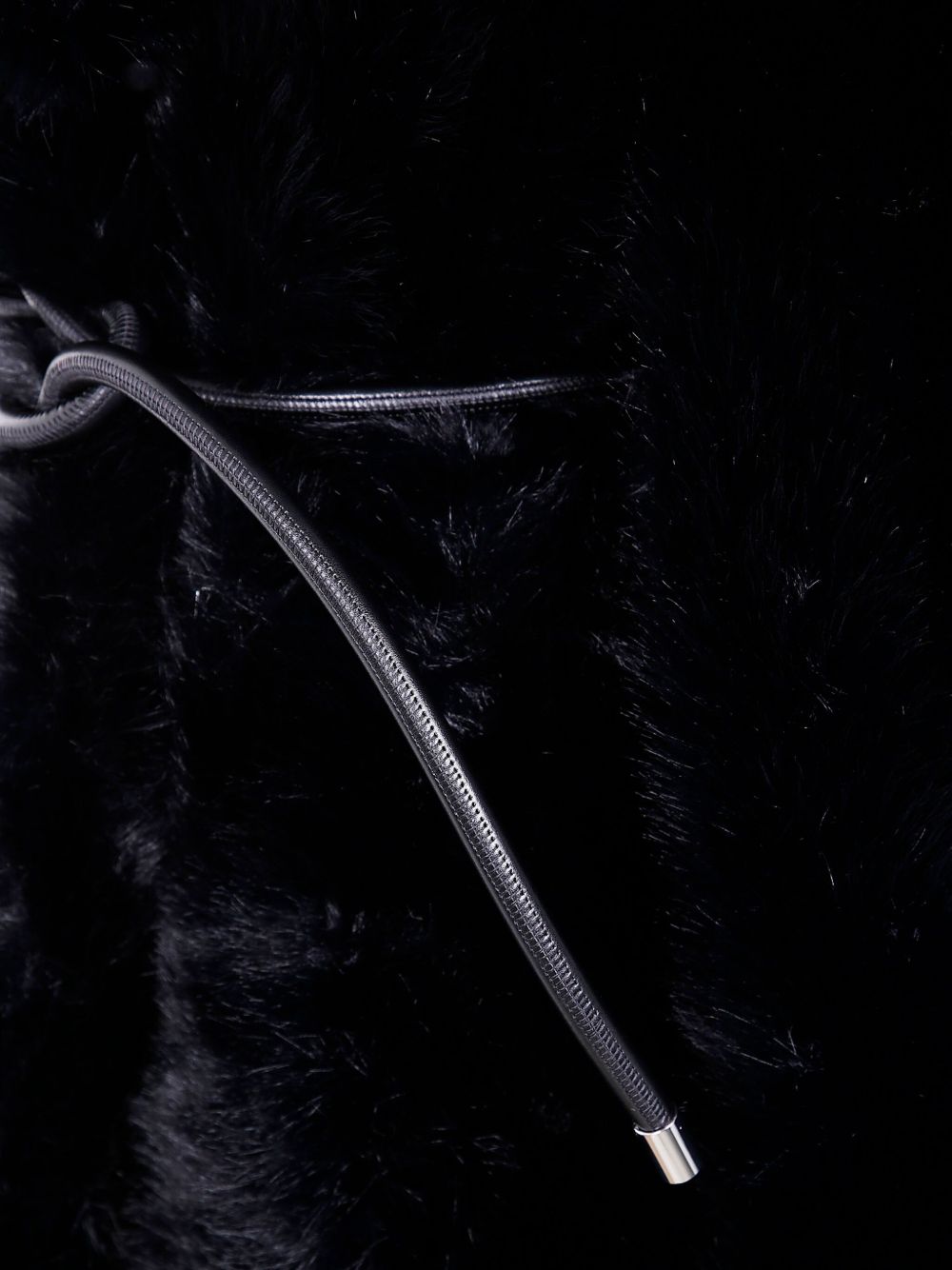 light grey faux-fur design stretch-design brushed effect concealed front fastening wide notch lapels drop shoulder long sleeves straight hem mid-length