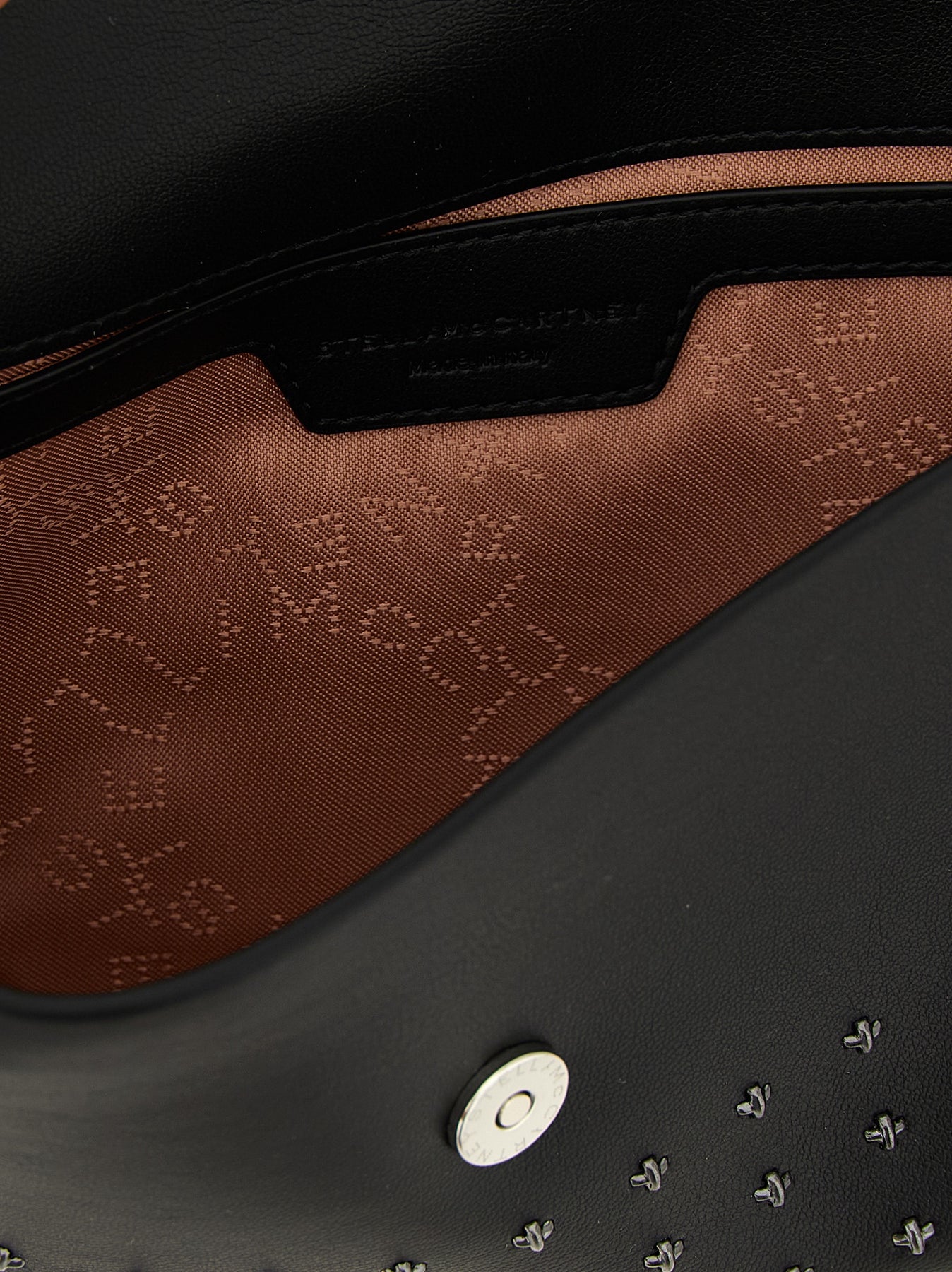 Wallet on chain - Limited Edition in Alter-Mat with all-over hand-knit silver star studs, 'Falabella' diamond chain, magnetic flap closure, chain shoulder strap, medallion charm with engraved logo. SUSTAINABLE: Products that do not use leather respecting cruelty free ethics.