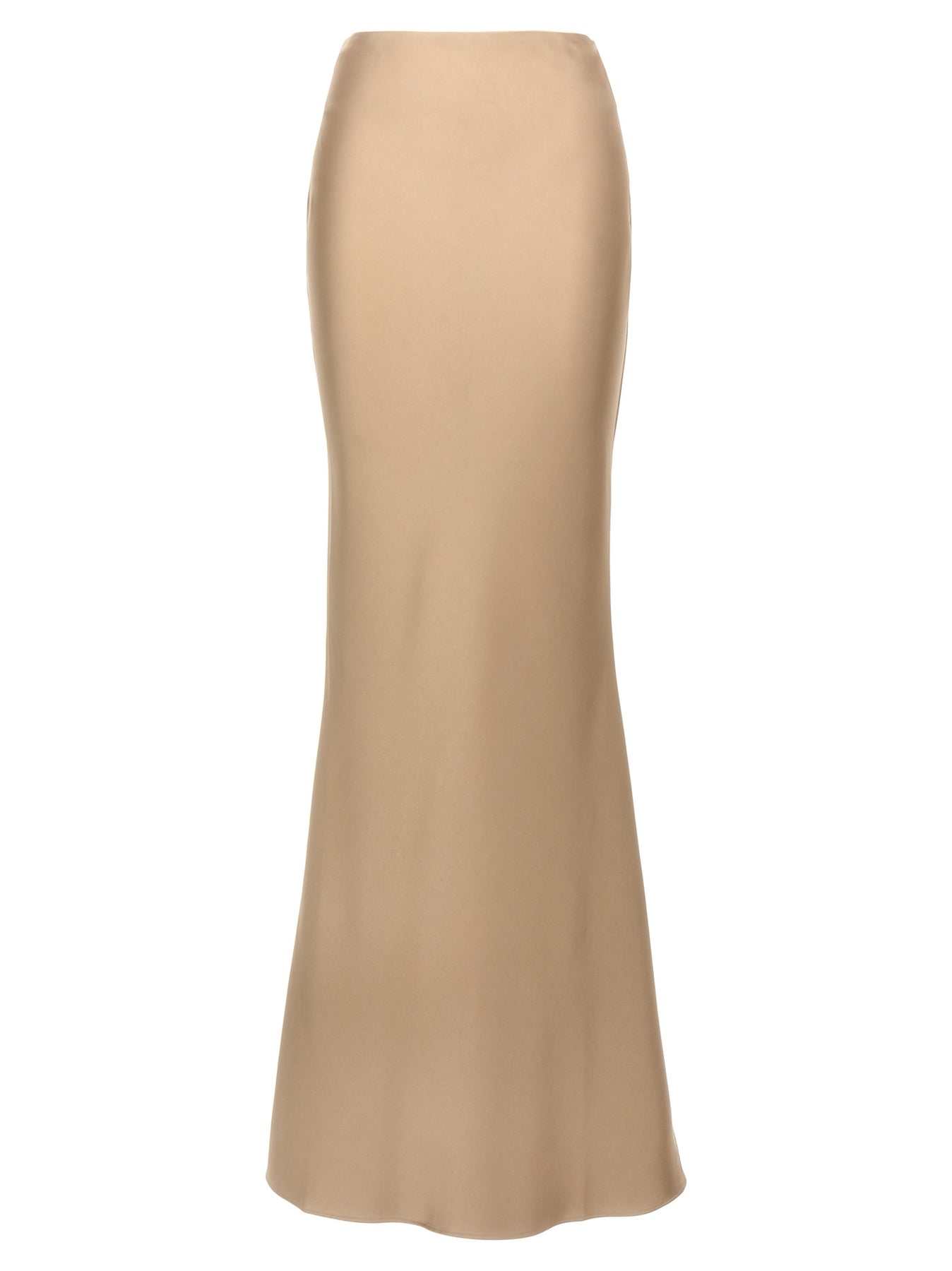 'Nemesia' mermaid skirt in satin with curling and back zip closure.