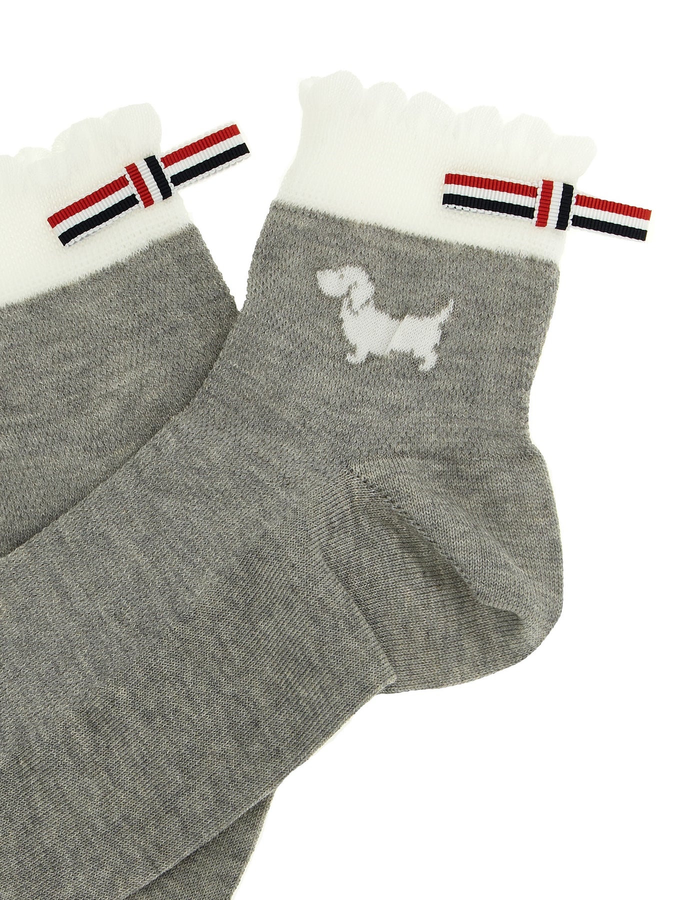 Cotton socks with 'Hector' intarsia and contrast pointelle band with grosgrain bow. ITEM CANNOT BE RETURNED