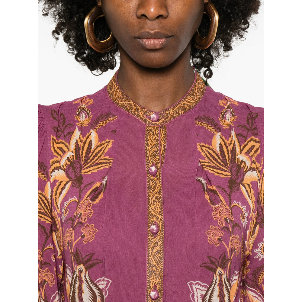 pink floral print belt long sleeves button fastening tiered skirt