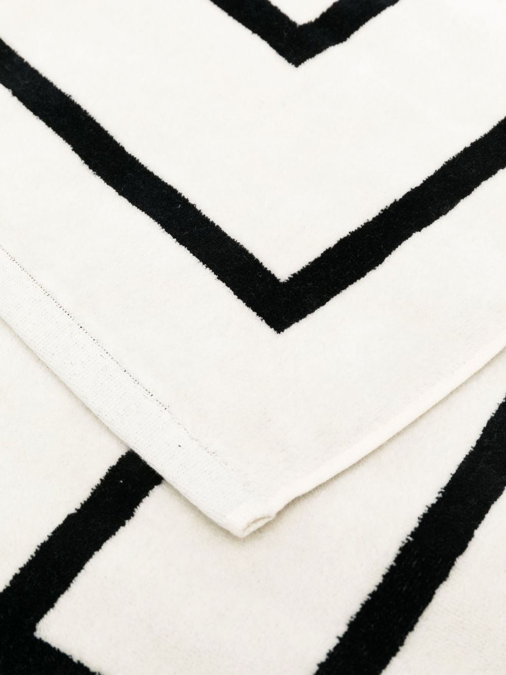 cream white/black cotton rectangle body jacquard logo motif finished edge