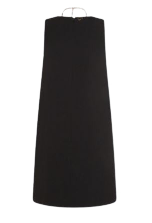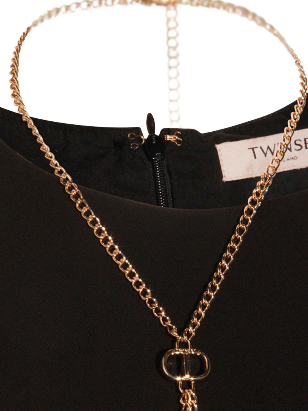 black sleeveless design crew neck gold-tone chain embellishment zip fastening a-line shape