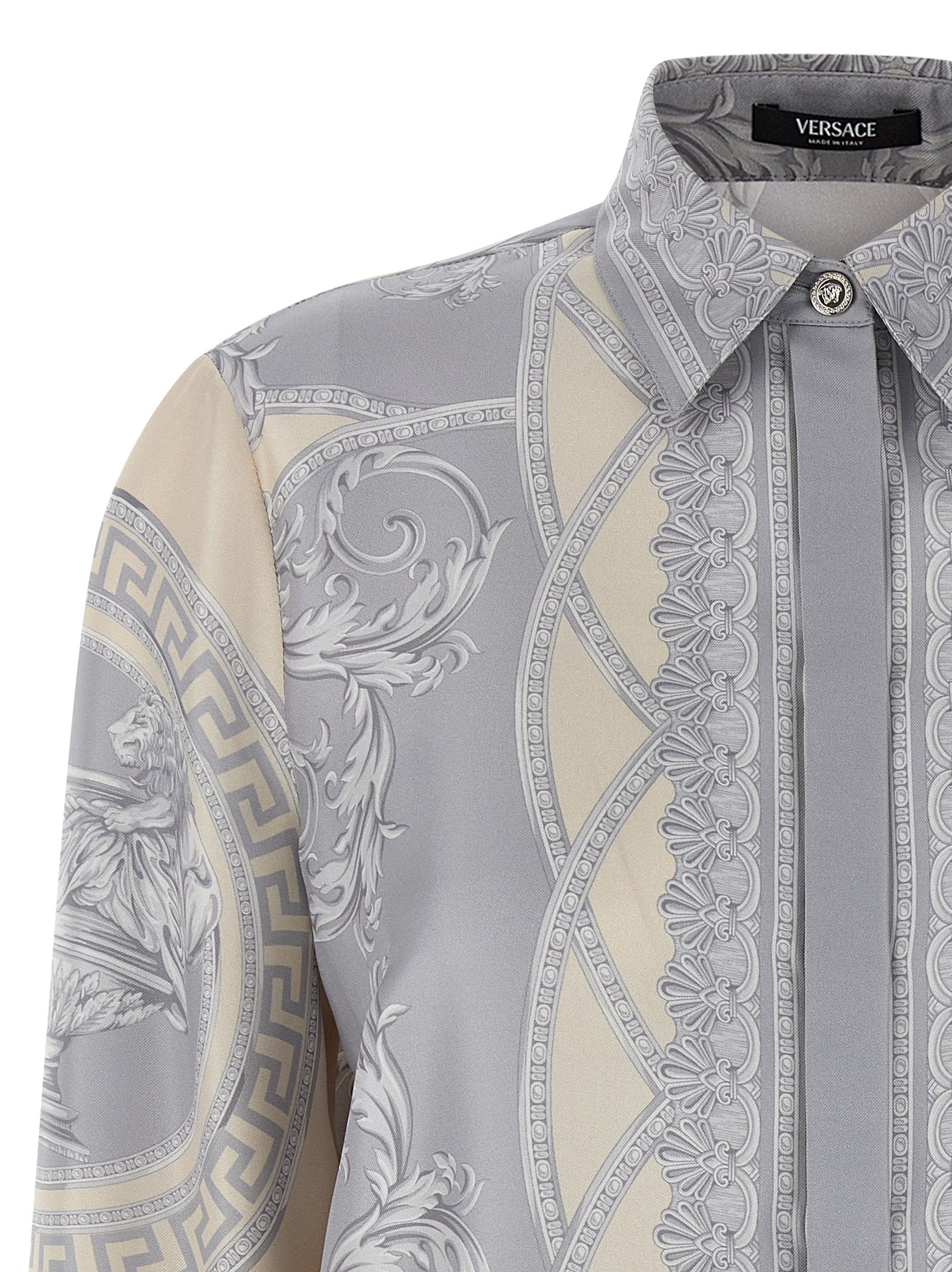 'La Coupe des Dieux' print silk twill shirt, button closure, long cuffed sleeves.
