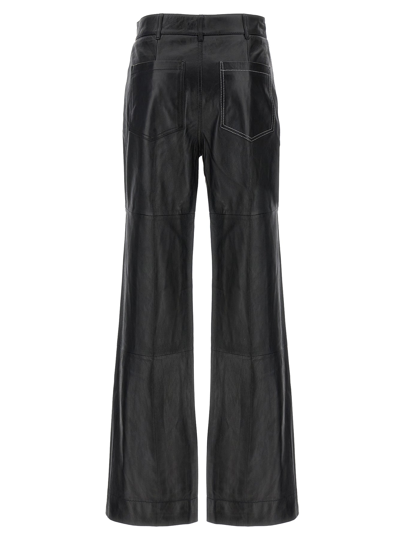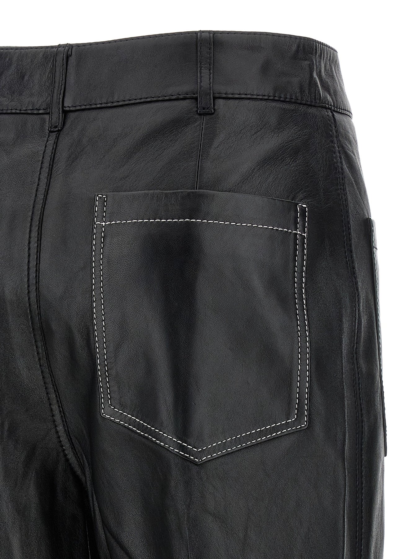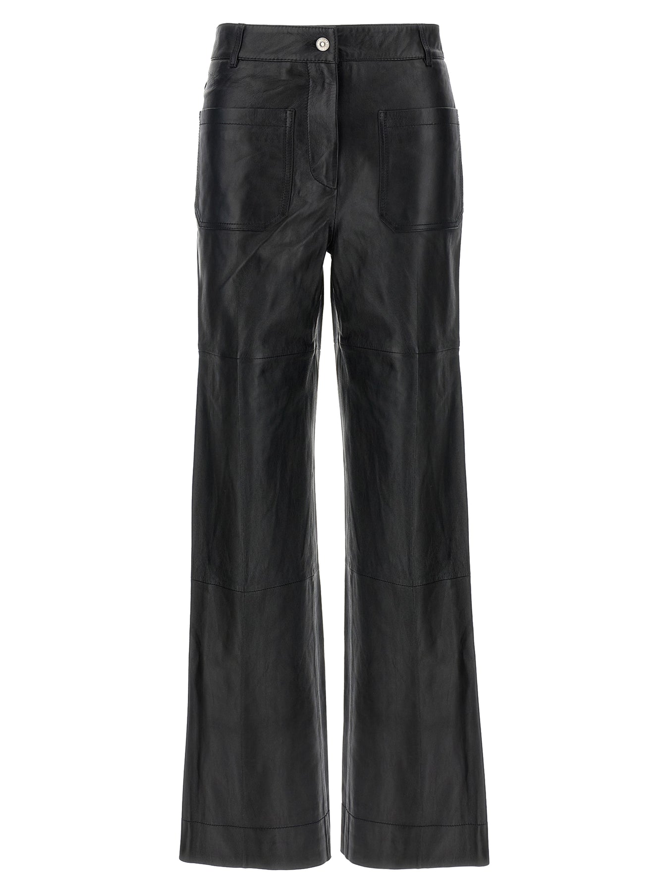 High-waisted 'Alina' leather pants with slightly wide straight leg, patch pockets, contrast stitching, zip and button closure.