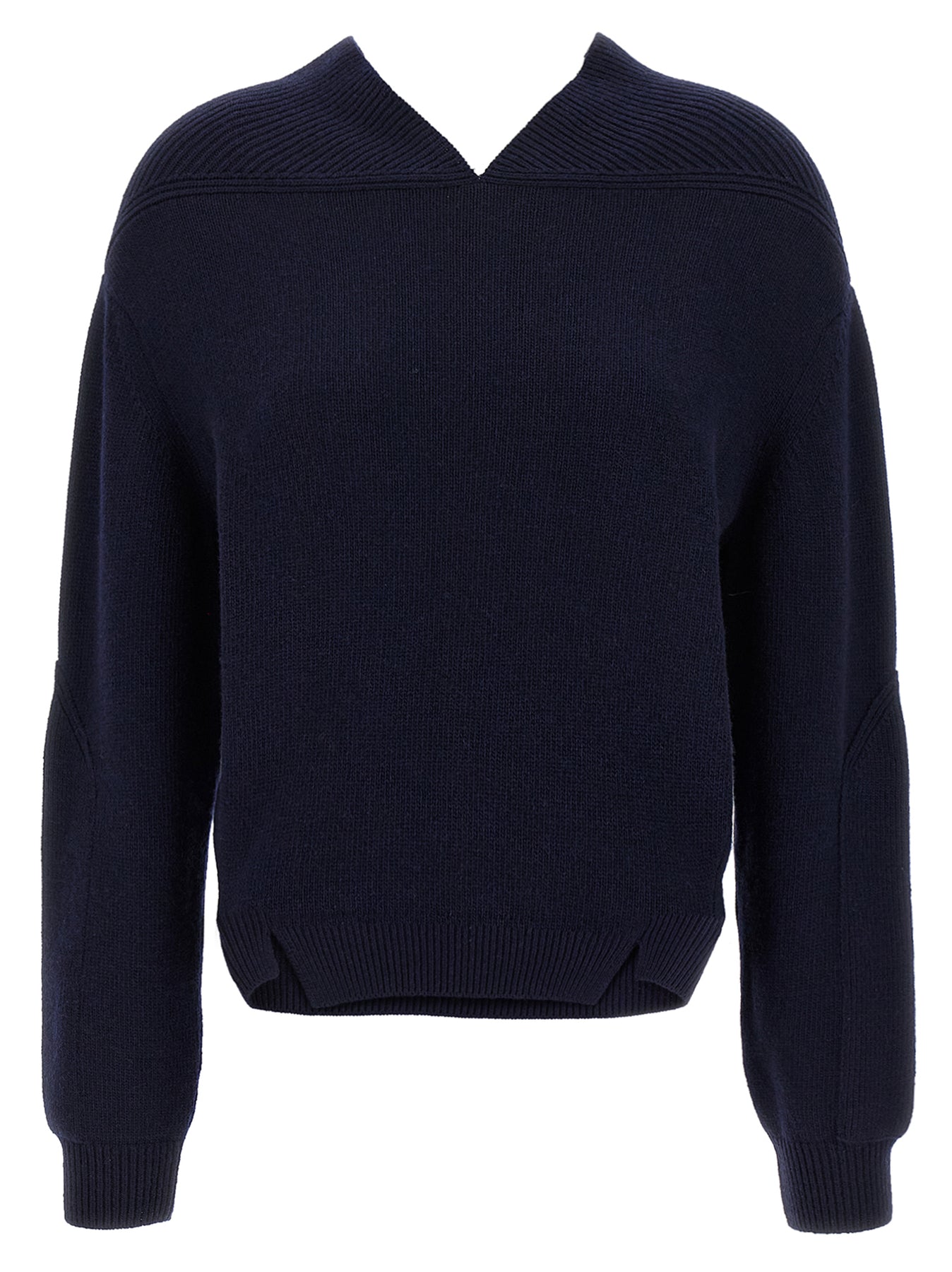 'V-neck Yoke detail' cashmere blend sweater with V-neck, side splits, back embroidery with logo, long sleeves with cuffs.