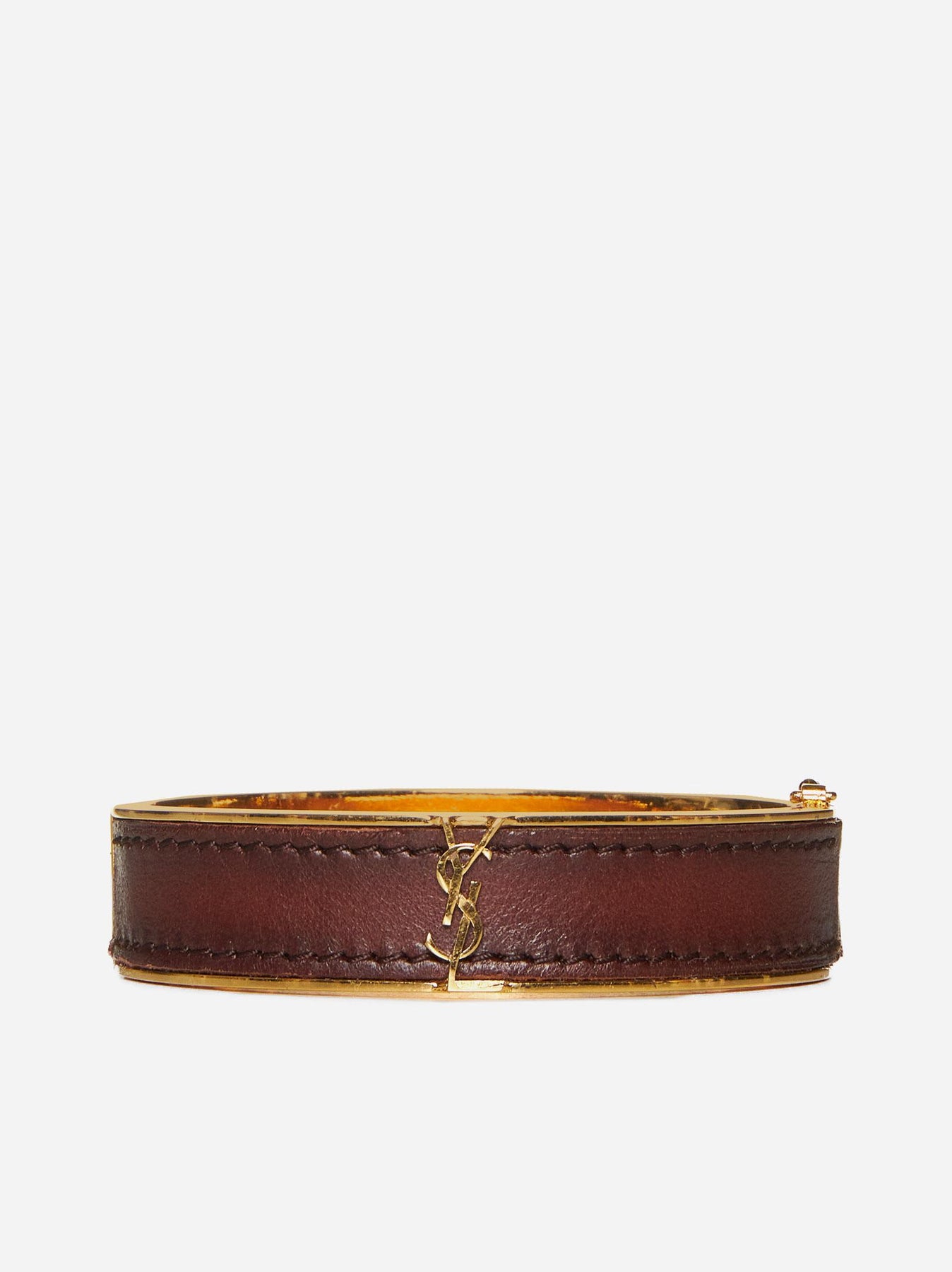 "Cassandre" bracelet in yellow gold-plated metal with burgundy leather inlay from Saint Laurent