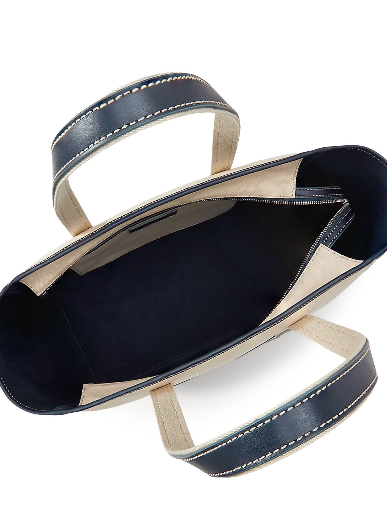 Double leather handle Leather inserts Zip closure Contrasting stitching Canvas/Leather H: 34 cm, W: 35 cm, D: 14 cm SKU: 428968158002