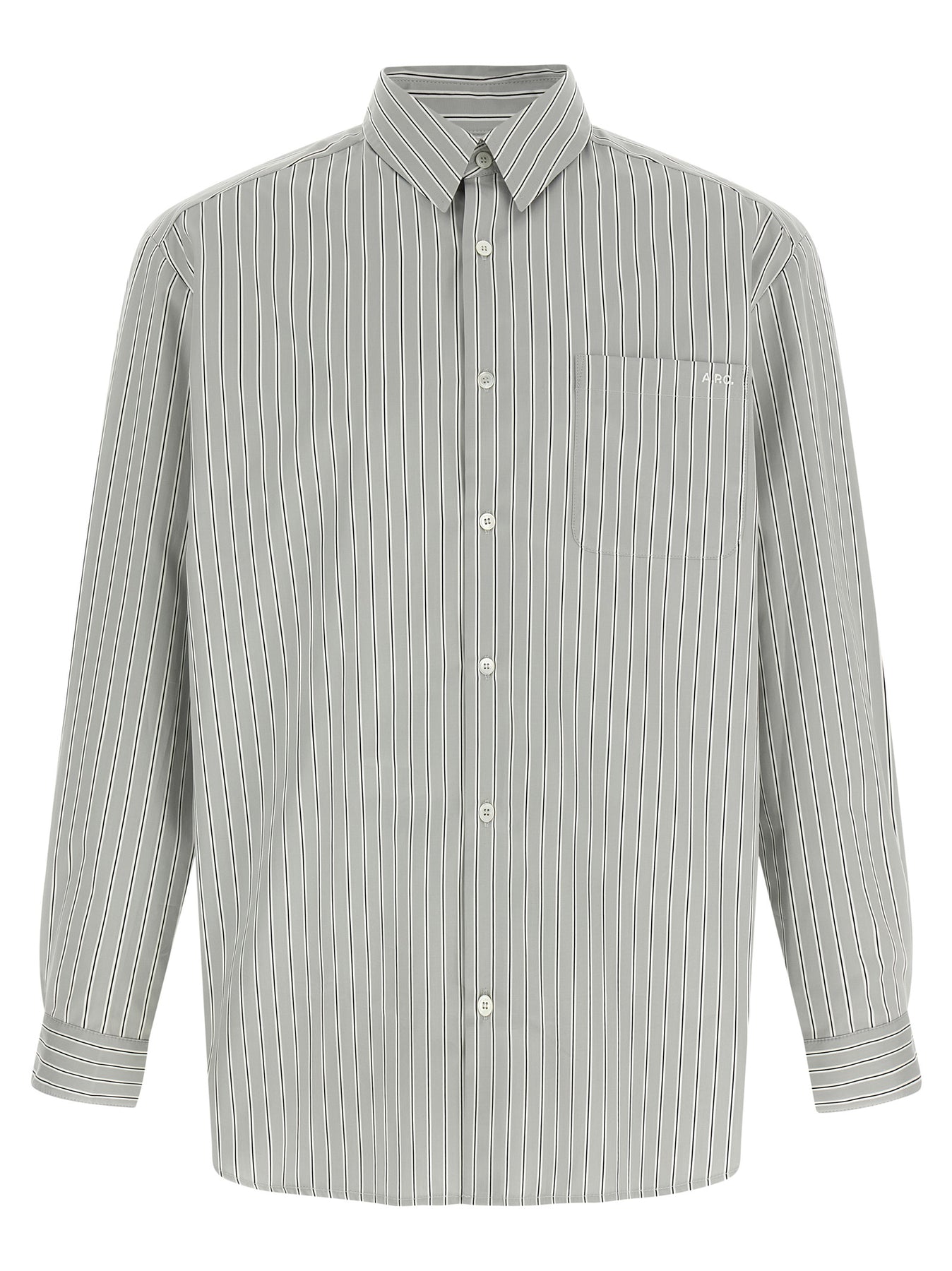 'Malo' shirt in striped cotton poplin, pocket with logo embroidery, front button closure, long sleeves with cuffs and dropped shoulder, side slits, rounded hem.