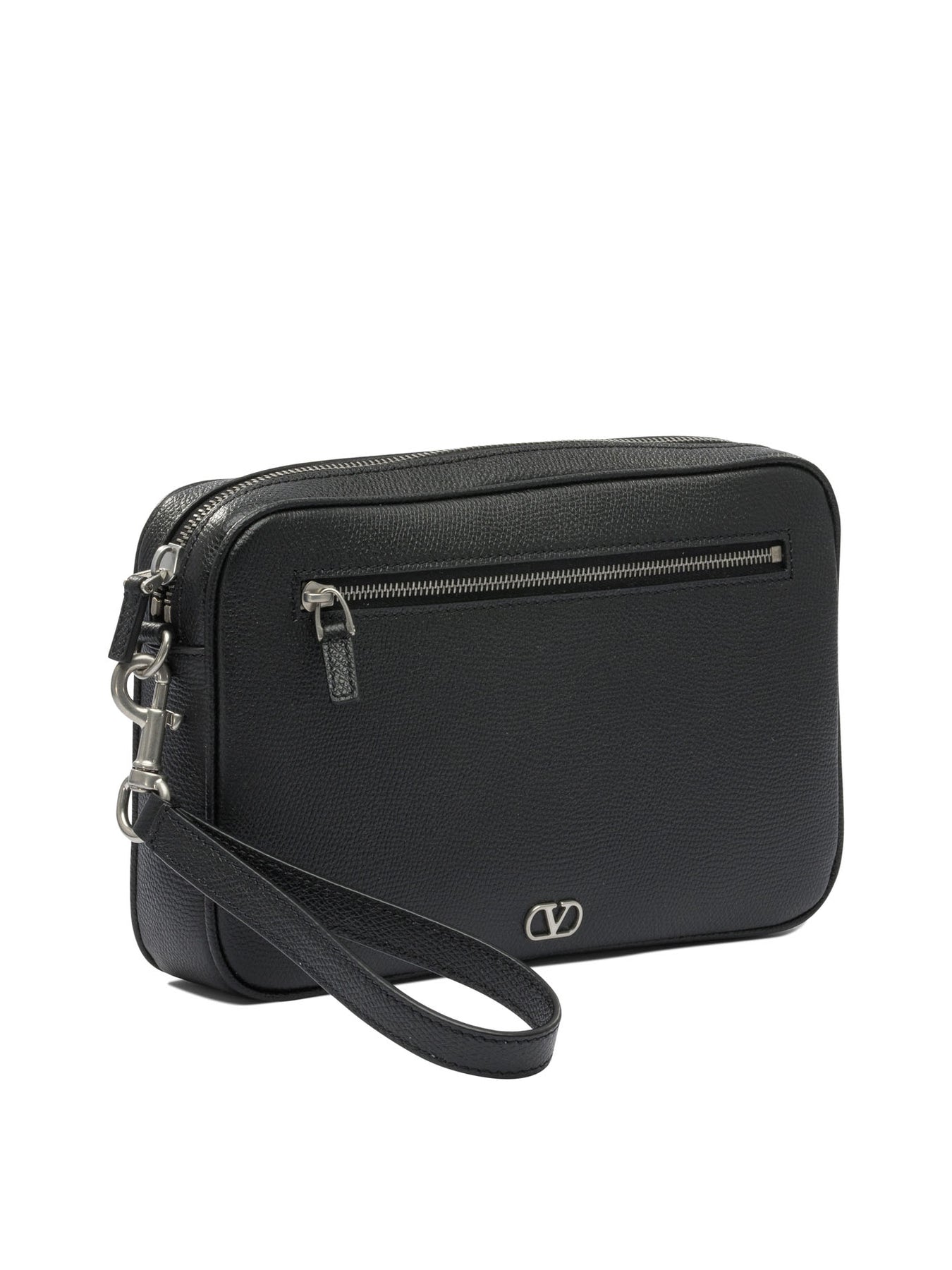 Valentino Garavani's "VLogo Signature" beauty case represents a perfect balance between contemporary style and understated elegance. This accessory is designed for the modern man, who seeks functionality without sacrificing refined design. Ideal for organizing beauty essentials, the beauty case becomes an indispensable travel companion, adapting with sophisticated naturalness to different contexts, both professional and personal. || - Signature VLogo - Exterior zippered pocket - Top zipper closure - Removable wrist strap - Interior card pockets