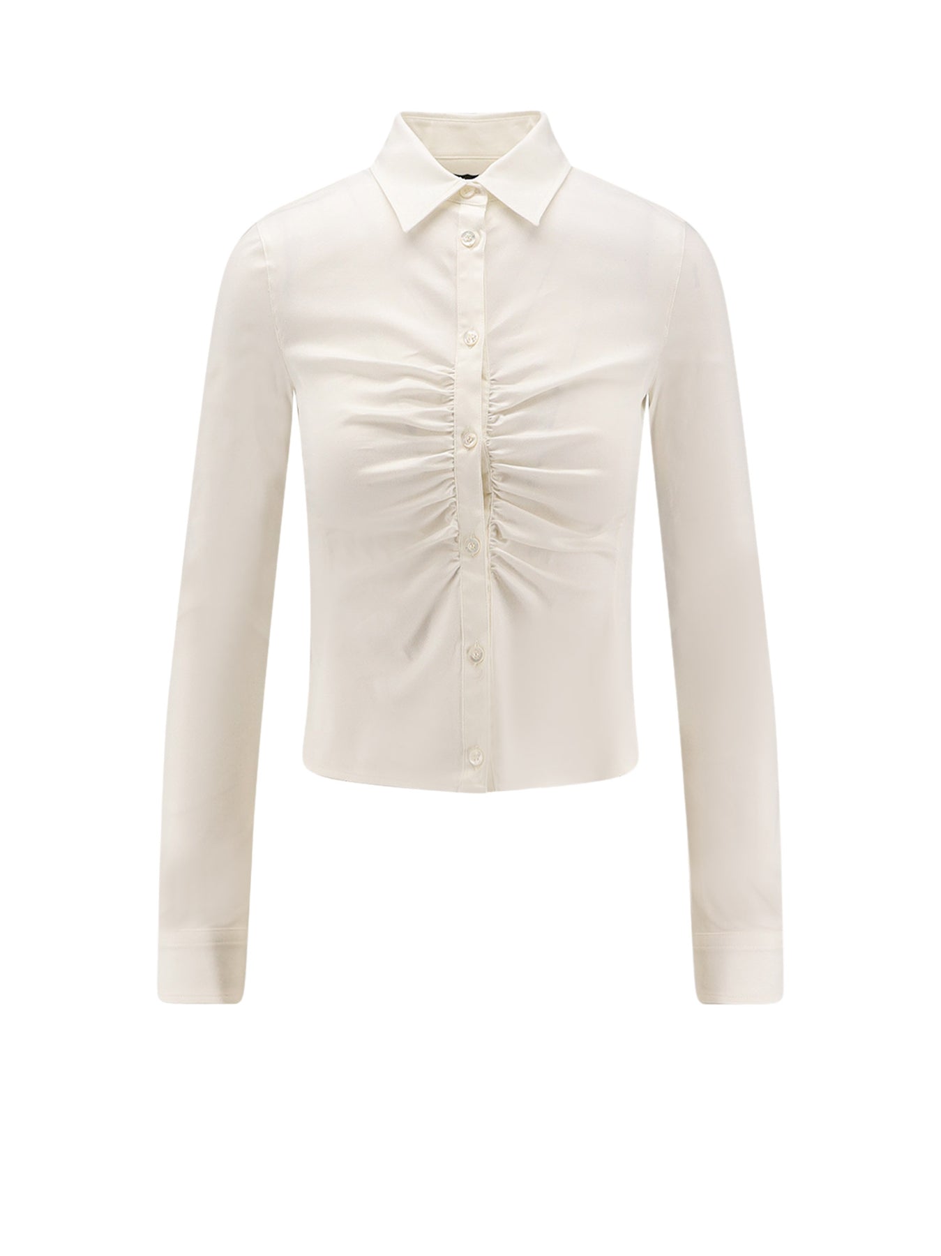 Button closure Pointed collar Gathered profile Made in Italy 85% cotton, 12% polyamide, 3% elastane SKU: 850785TSM199000