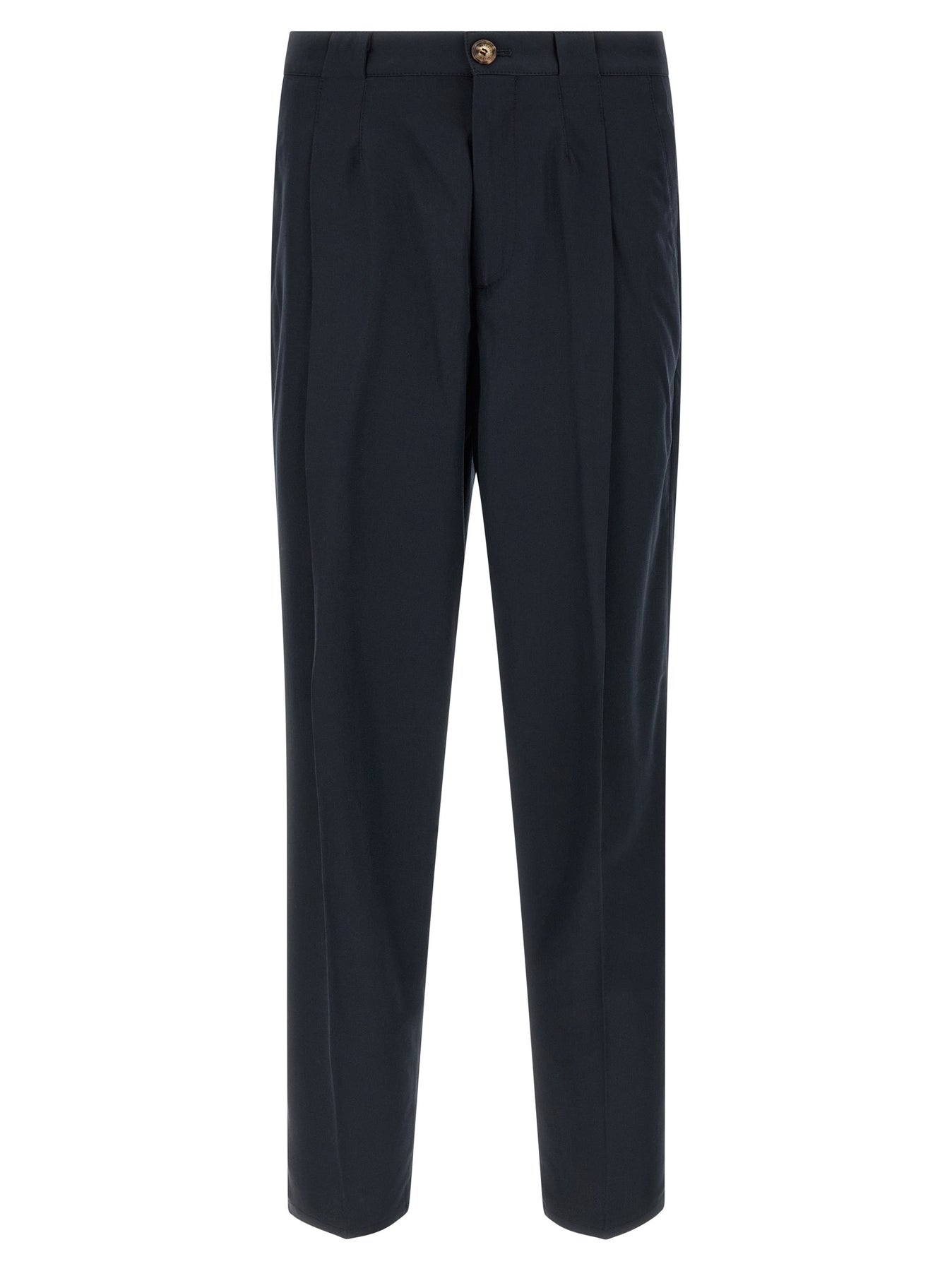 Chinos in cotton with front zip and button closure, regular waist model with straight leg, pleats at the waist and belt loops, diagonal welt pockets at the front and horizontally at the back.