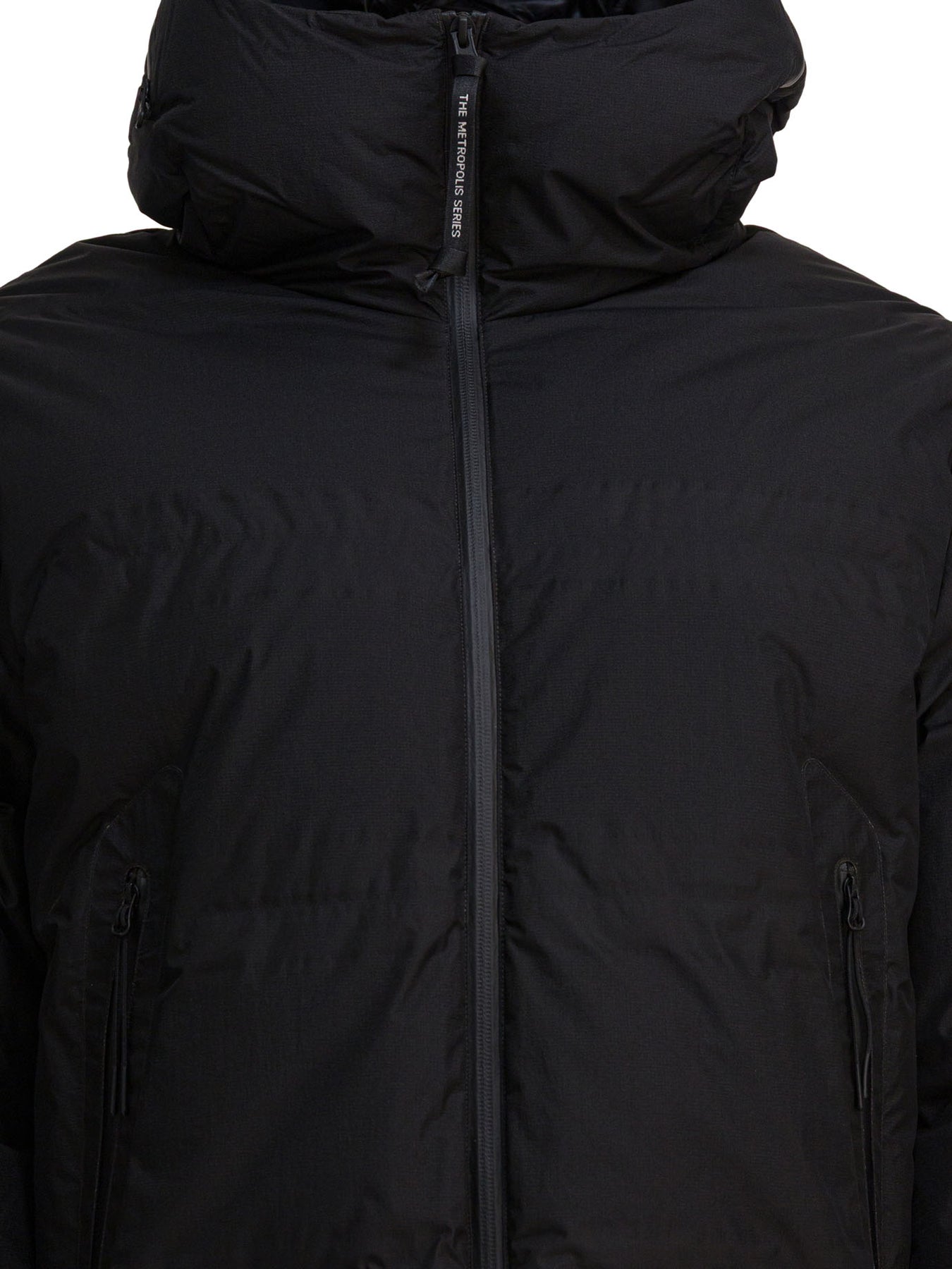 Pertex C.P. Company down jacket made of ultralight 2.5-layer ripstop fabric with a waterproof membrane and micro-embossed inner finish to increase breathability. The baffled construction, achieved through heat-bonded tapes, eliminates cold spots and prevents down leakage. Adjustable hood features top zipper opening, while silhouette features clean lines and full zipper front closure. Zippered side pockets, elastic cuffs and adjustable drawstring hem complete the structure. || - Logo badge printed on the sleeve pocket - Long sleeves - Adjustable hood - Sleeve pocket with flap and Velcro closure - Zippered side pockets - Elasticized cuffs - Adjustable hem with drawstring - Baffled construction via heat-bonded tapes - Ultra-lightweight, 2.5-layer Pertex ripstop fabric - Breathable micro-embossed interior trim - Full zipper closure - Regular fit