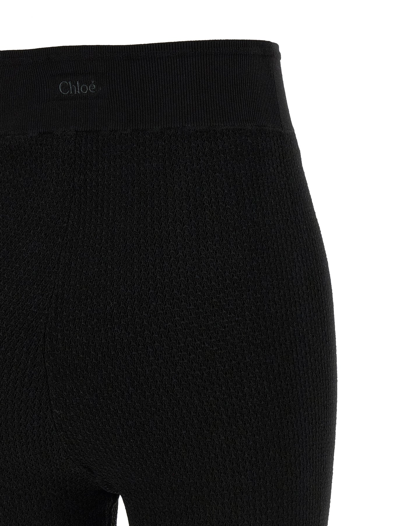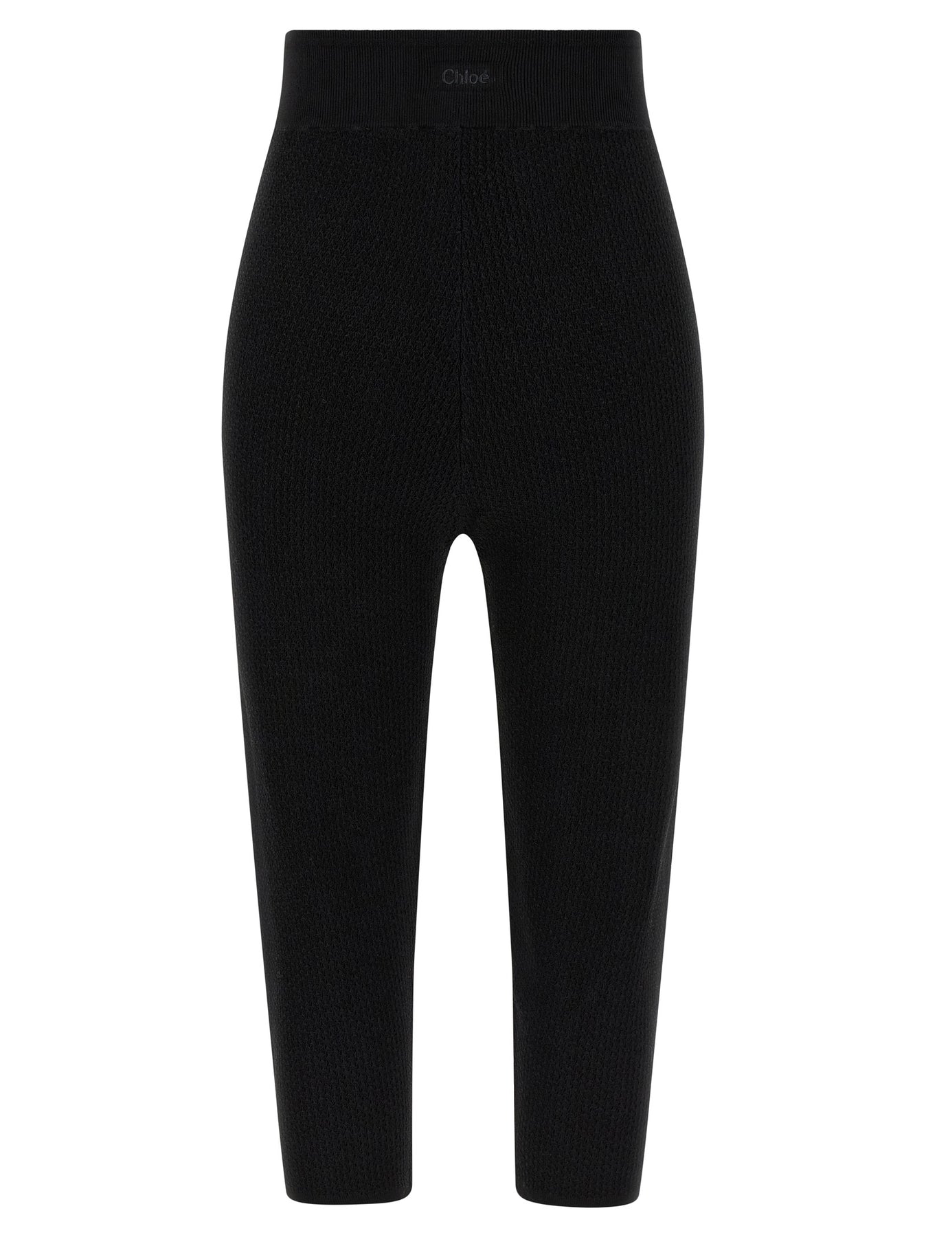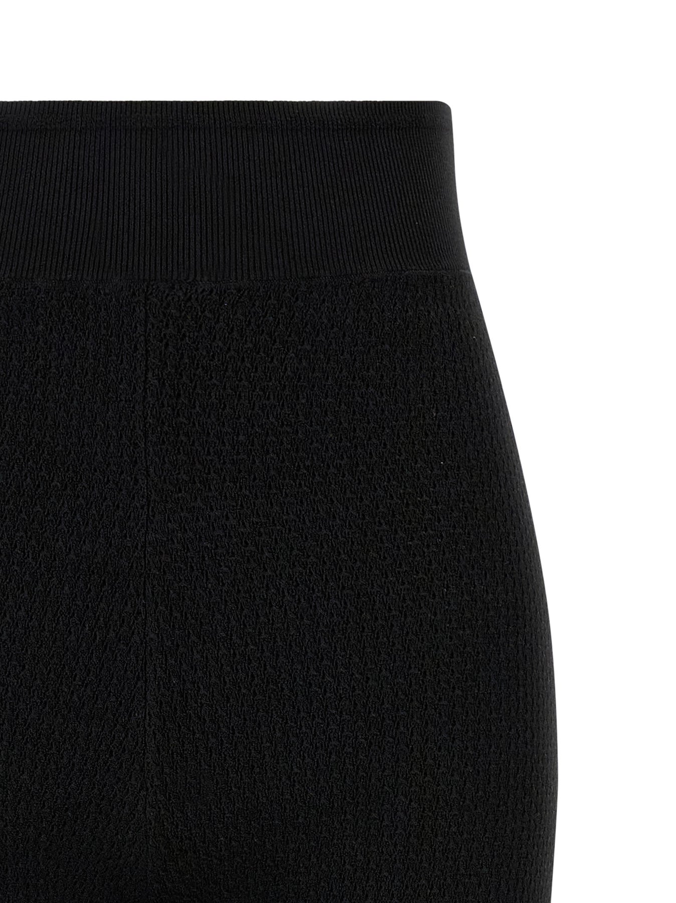 Knitted leggings, slightly perforated thick weave, cropped style with elastic knit trim at the waist.