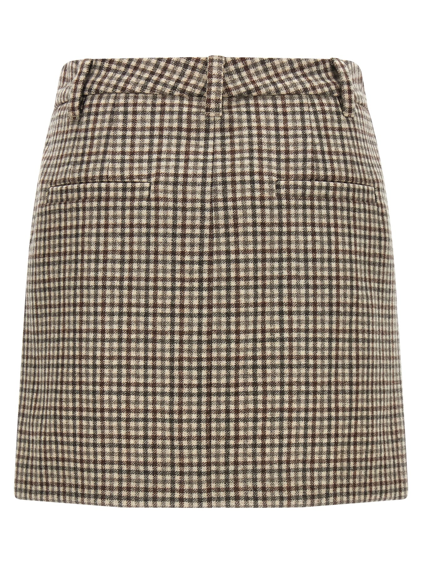 'Mini' skirt in virgin wool check flannel, pleats with front pleats, zip and button closure, pockets, lining.