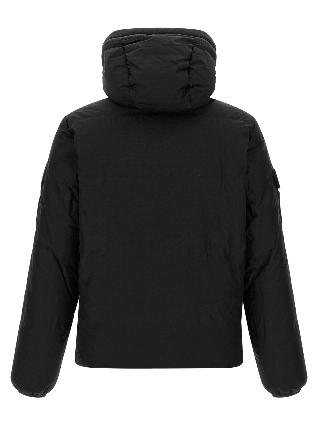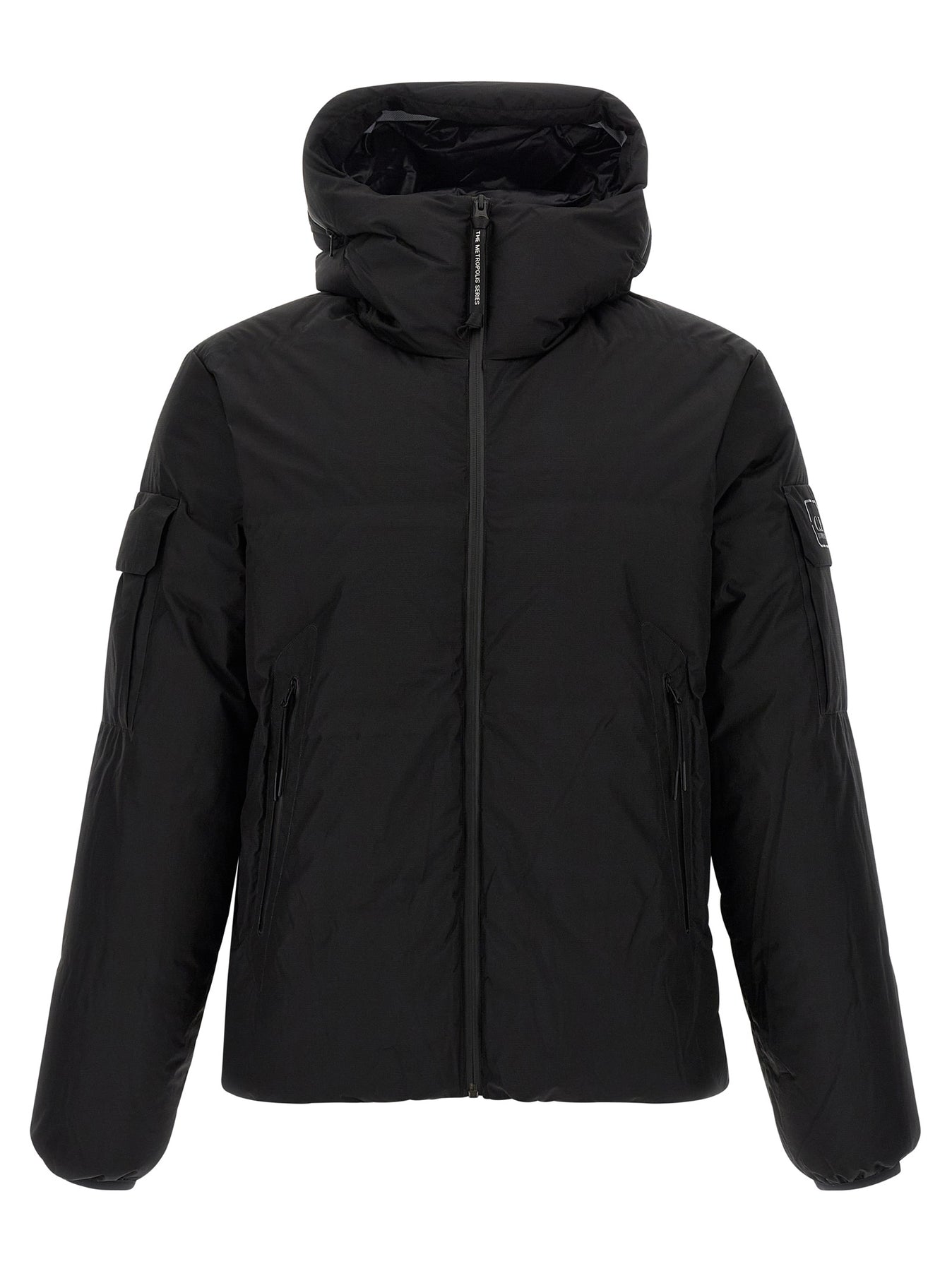 'The Metropolis Series' down jacket in ripstop fabric produced by Pertex® with water-repellent goose down padding, hood, high neck, front zip closure, pockets, long sleeves with elastic cuffs, drawstring on the hem.
