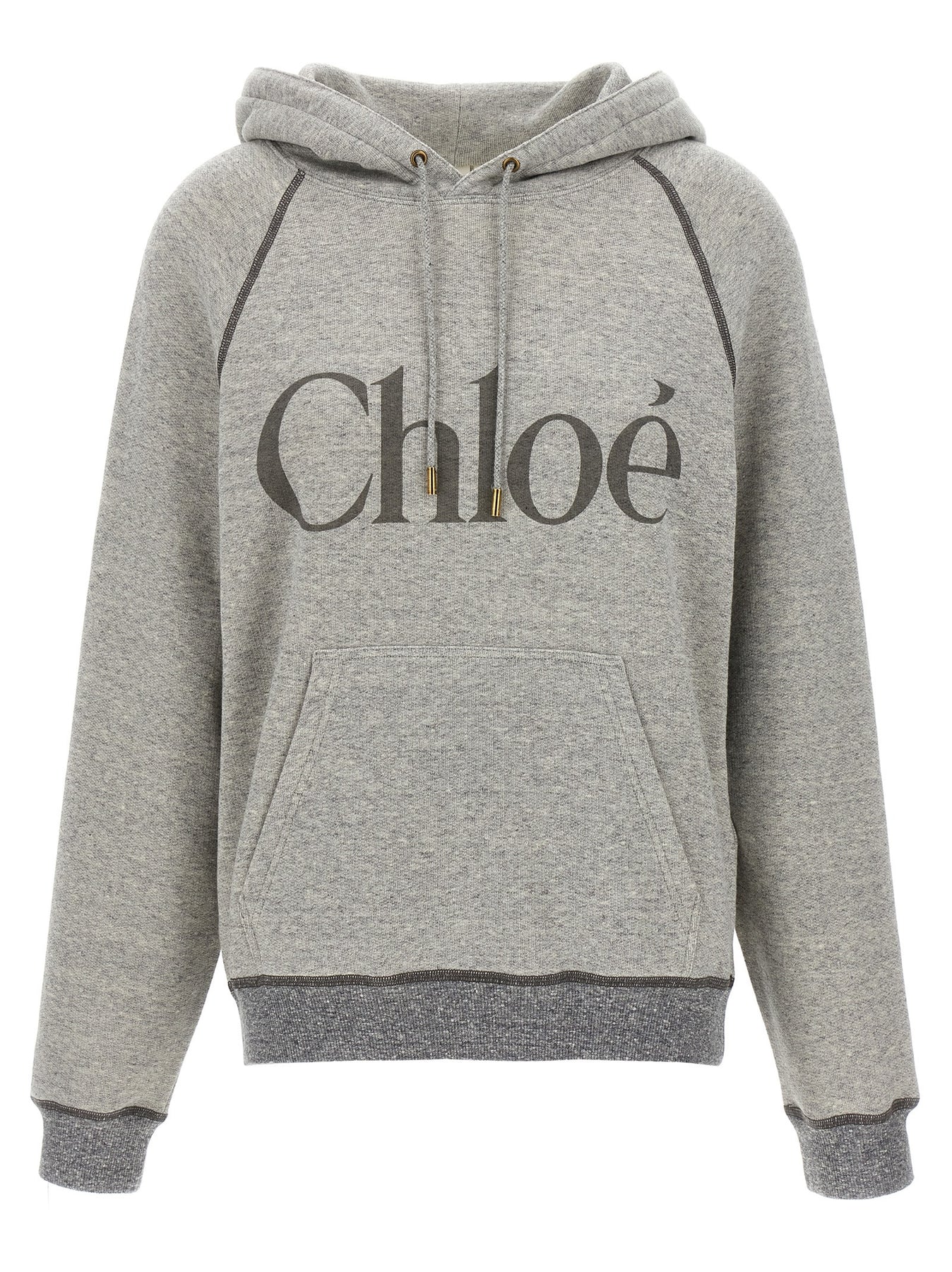 Chiné cotton blend hoodie with front logo print, kangaroo pocket, long cuffed sleeves and dropped shoulders.
