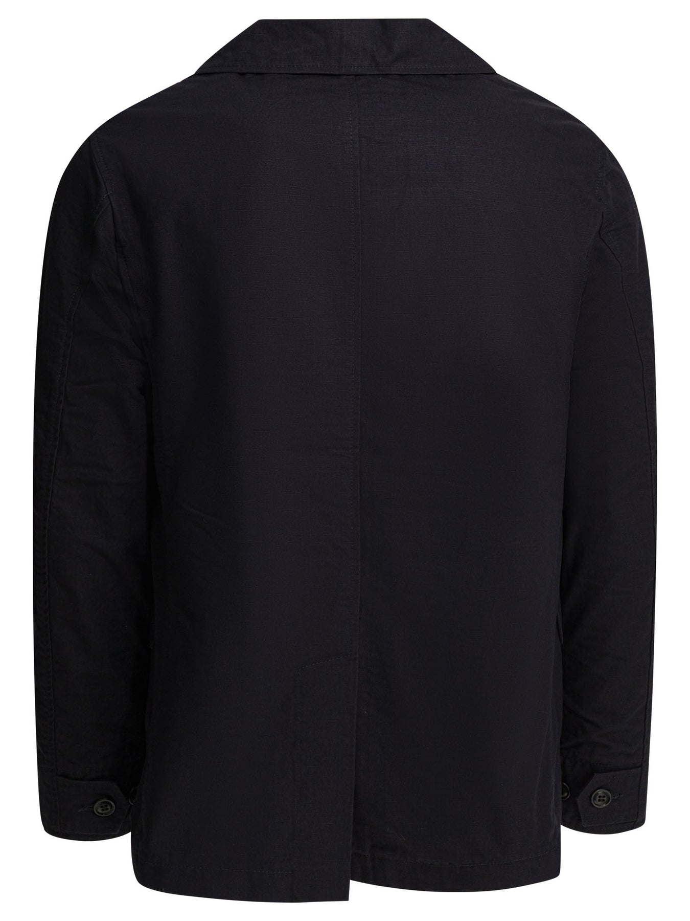Lightweight "Bush" Manifattura Ceccarelli jacket made of 100% cotton midweight ripstop fabric. The construction features chevron cotton shoulder lining and a straight silhouette. The ripstop construction, achieved by weaving two thicker cotton threads in warp and weft, ensures a small-square pattern. The central closure is three buttons, plus a fourth top button for locking lapels. || - Solid color - Long sleeves - Cotton chevron shoulder lining - One inside zipper pocket - Two front pockets with flaps and injection resin buttons - Two large welt pockets with flaps - Military sourced buttons - Garment washed and softened fabric - Tear-resistant fabric - Regular fit
