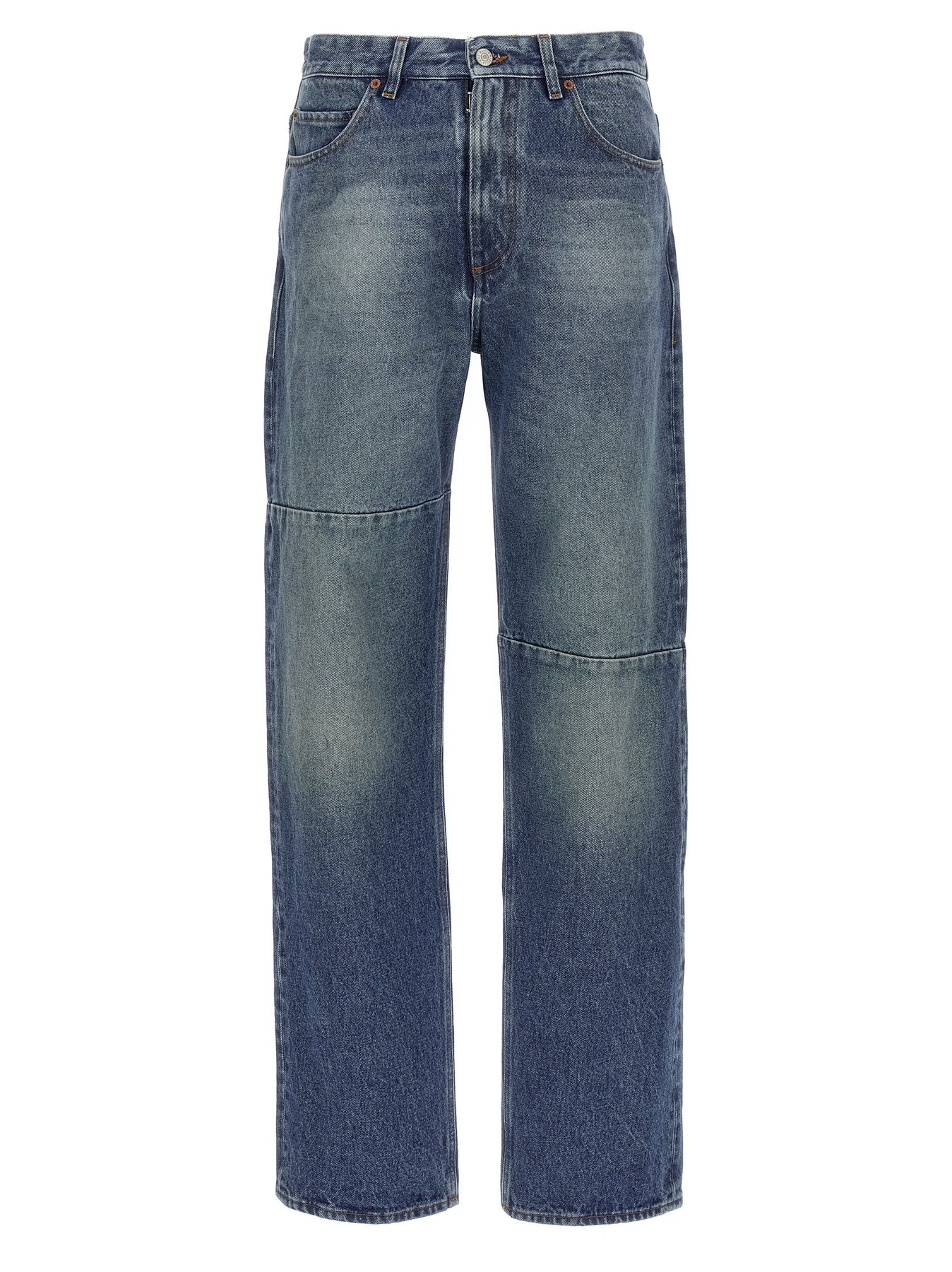 Stonewashed cotton denim jeans with asymmetric stitching, front zip and button closure, five pockets, back leather logo tag, straight leg.