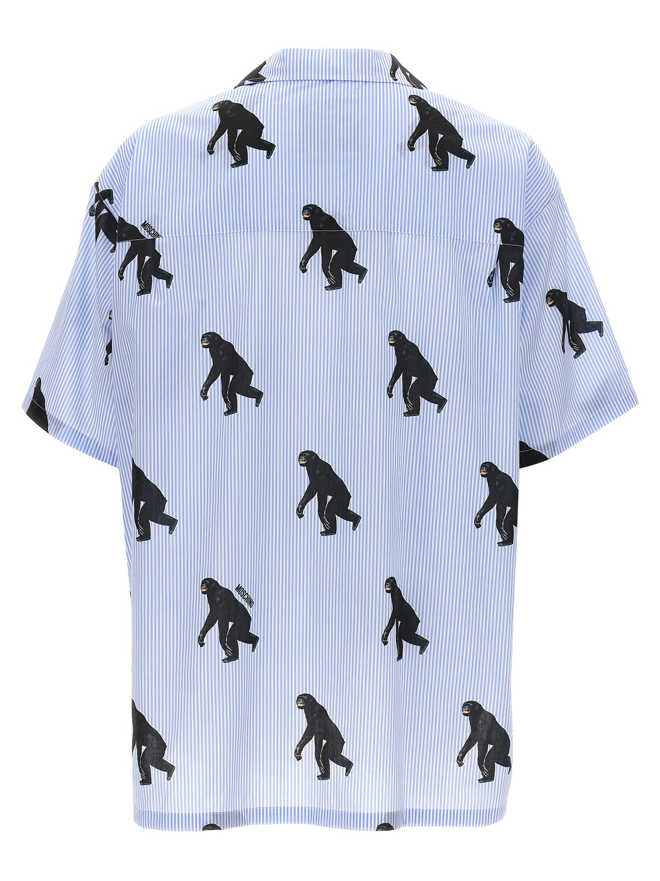 Cotton shirt, all-over 'Scimpanzé' print, front button closure, loose fit, side splits, and short sleeves.