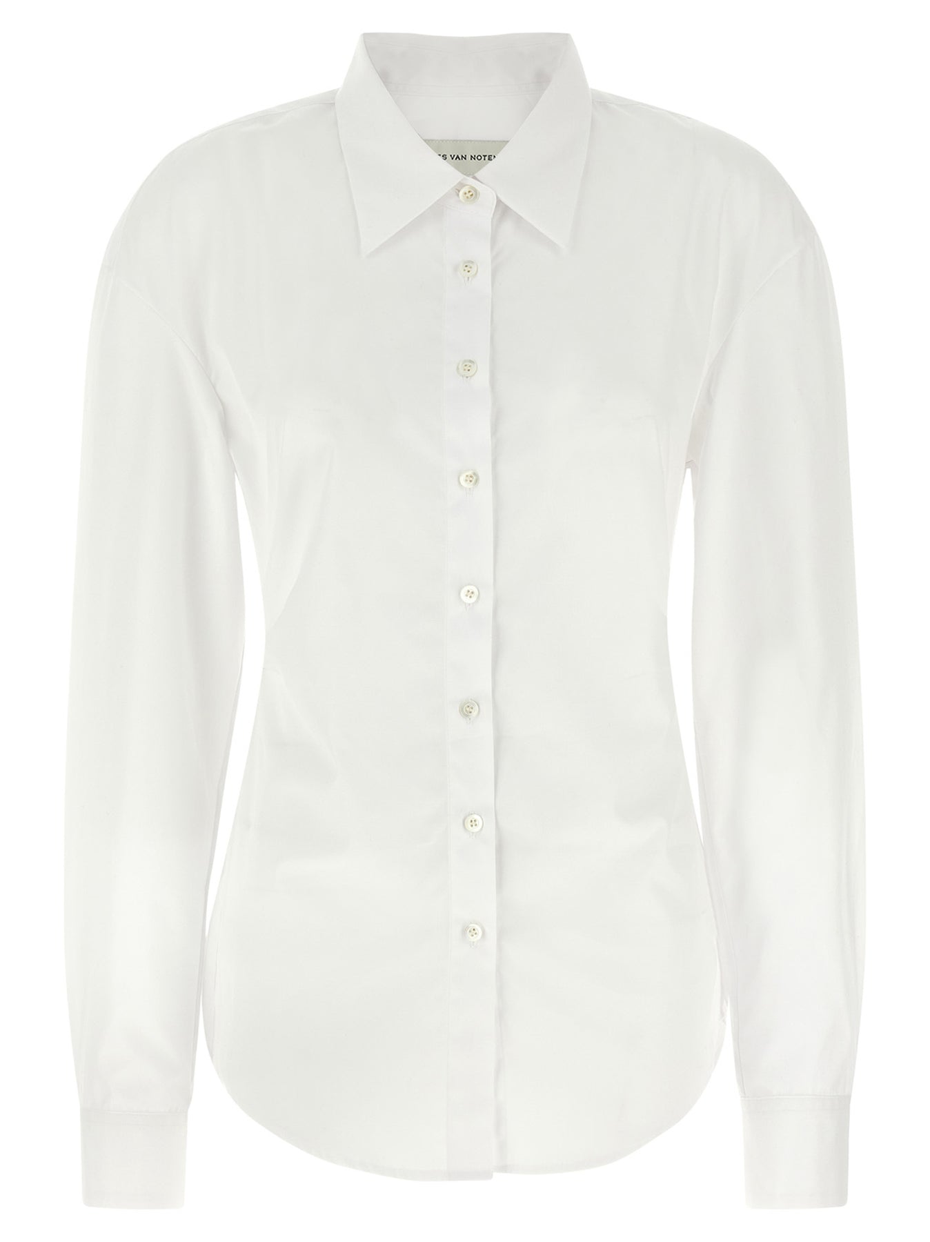 'Cenny' cotton poplin shirt with button closure, long cuffed sleeves, belt at the waist, side curls.