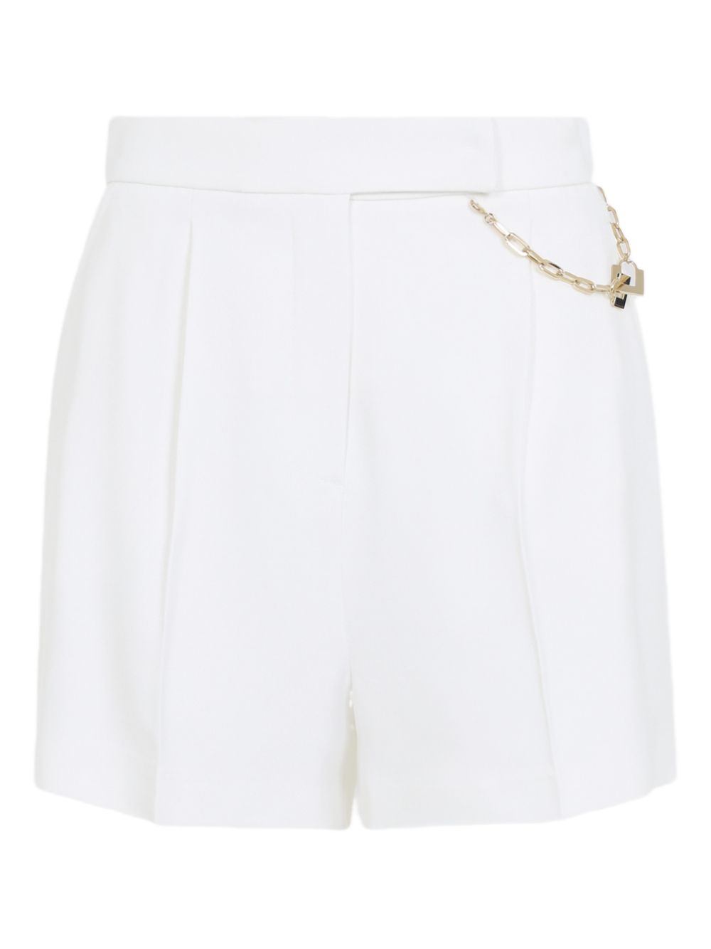 beige chain embellishment gold-tone hardware front pleats side pockets rear welt pockets