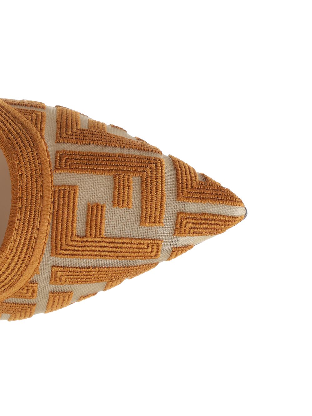 "Colibrì" slingback in mesh decorated with Cornely FF embroidery by Fendi, with elastic straps that wrap around the foot, sole with rubber island, padded cushion and trekking hook, heel covered in resin with a marbled effect.